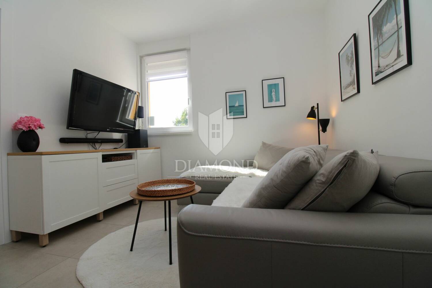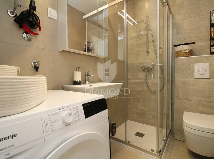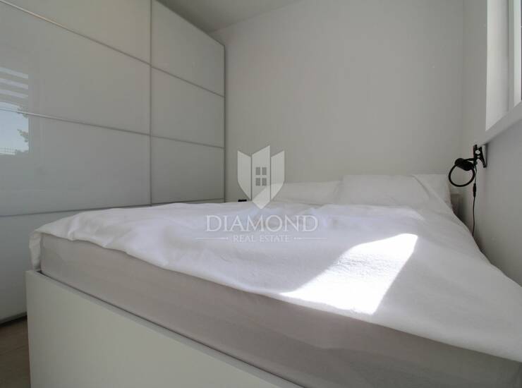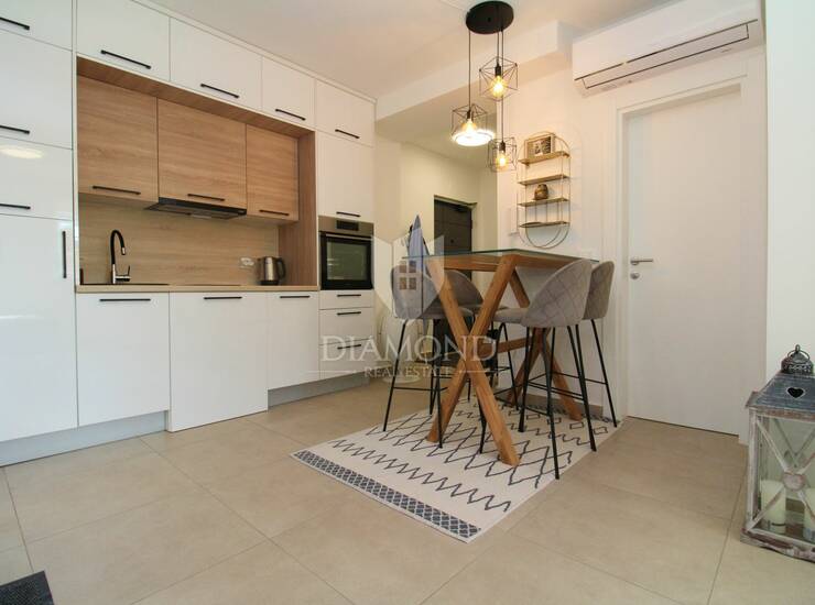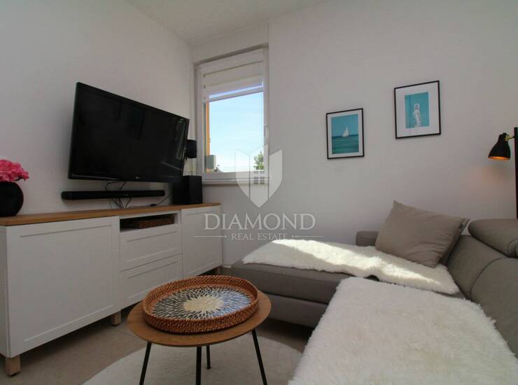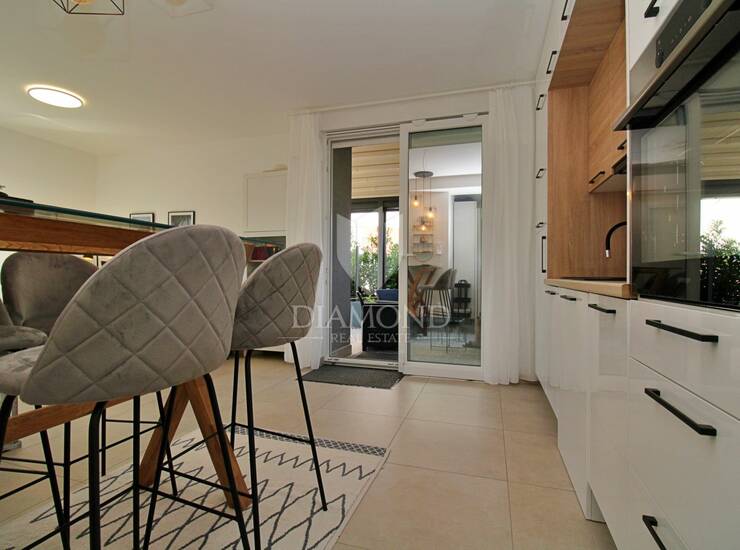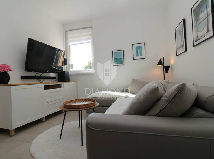 Prodajemo jednosobni stan u prizemlju novogradnje. Stan ima unutarnju površinu od 37 četvornih metara terasu površine 15 četvornih metara i vrt površine 22 četvornih metara. Stan se sastoji od jedne spavaće sobe, kupaone i dnevnog prostora sa blagovaonom, kuhinjom i dnevnim boravkom. Stan se prodaje potpuno namješten i opremljen kvalitetnim namještajem bez tragova korištenja.