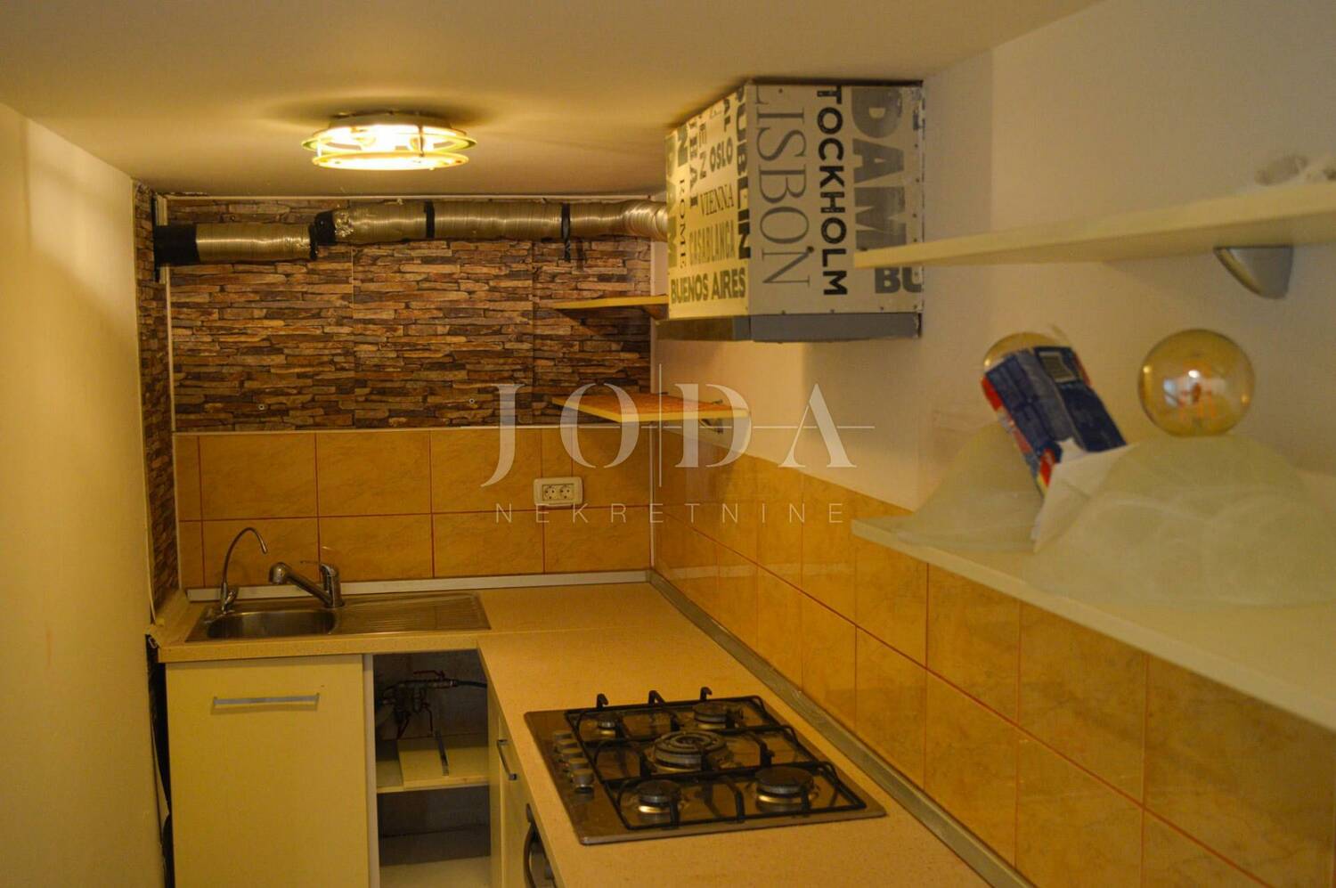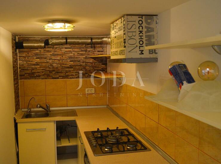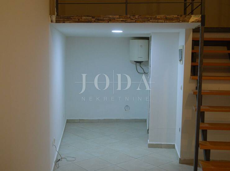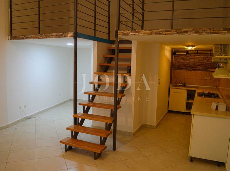 Stan je smješten u suterenu stambeno/poslovne zgrade, a sastoji se od dnevnog dijela – kuhinje, dnevnog boravka i kupaonice te noćnog dijela (galerije),