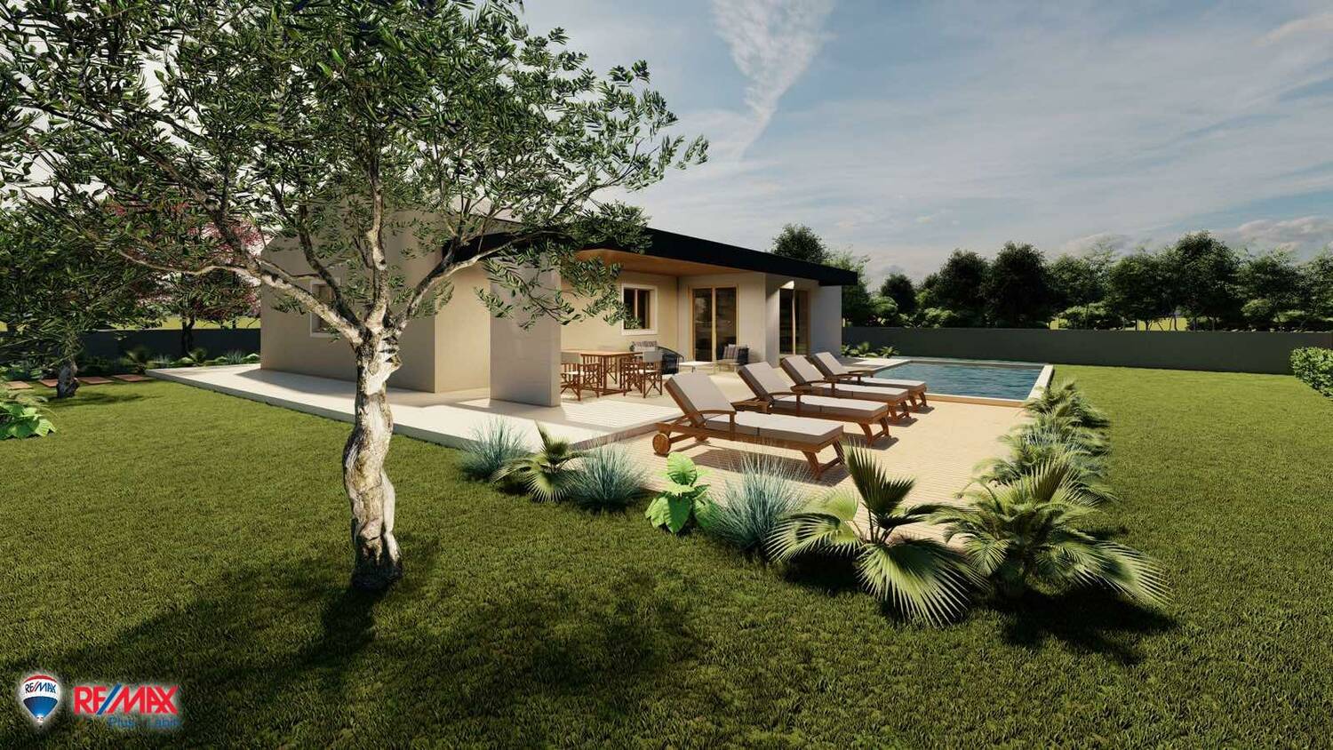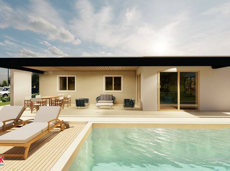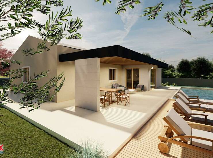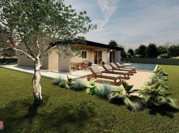 Izrađen je projekt za prizemnicu brutto površine (bez terasa) 121 m2 sa bazenom 30 m2.