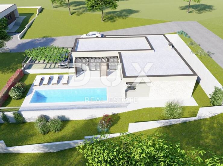 Vani je predviđen bazen i natkrivena ljetna kuhinja u čijem je nastavku natkrivena terasa.