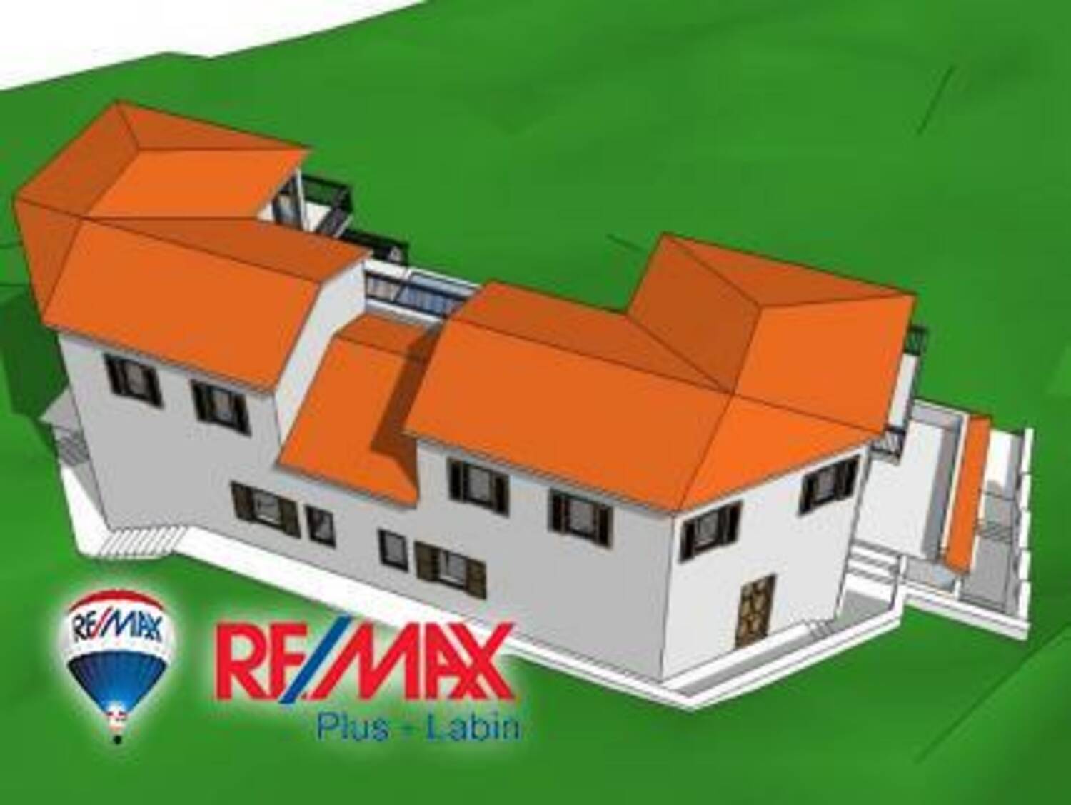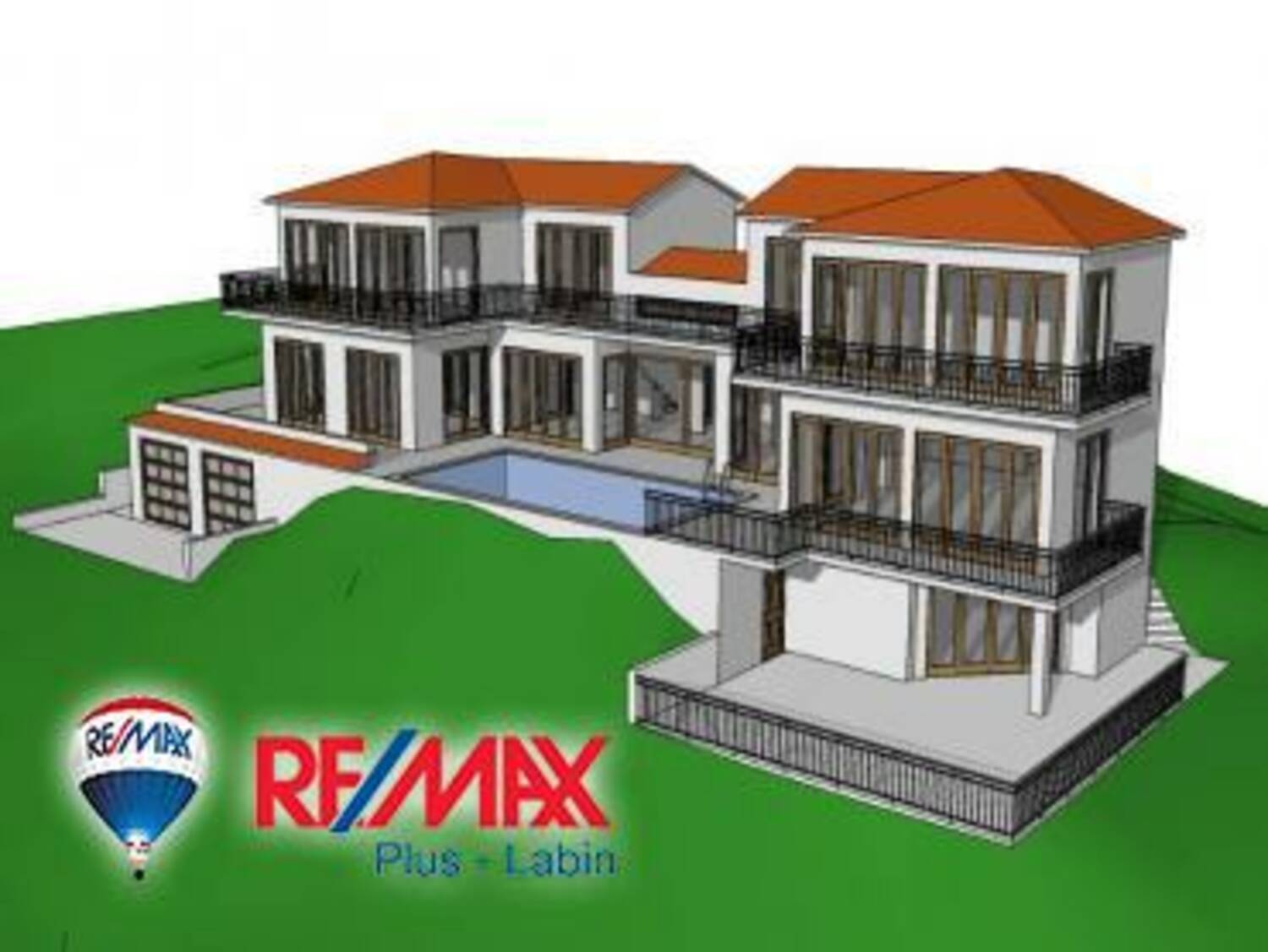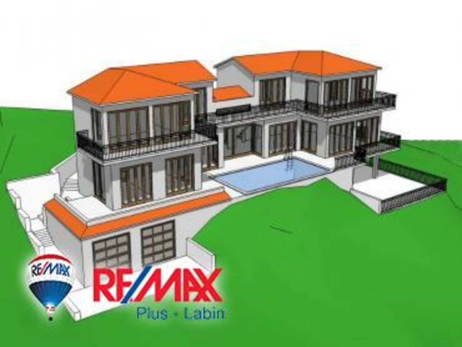 Građevinsko zemljište u okolici Labina sa pogledom na more površine 1236m2, sa ishodovanom građevinskom dozvolom za prostranu obiteljsku kuću stambene korisne površine 490m2.