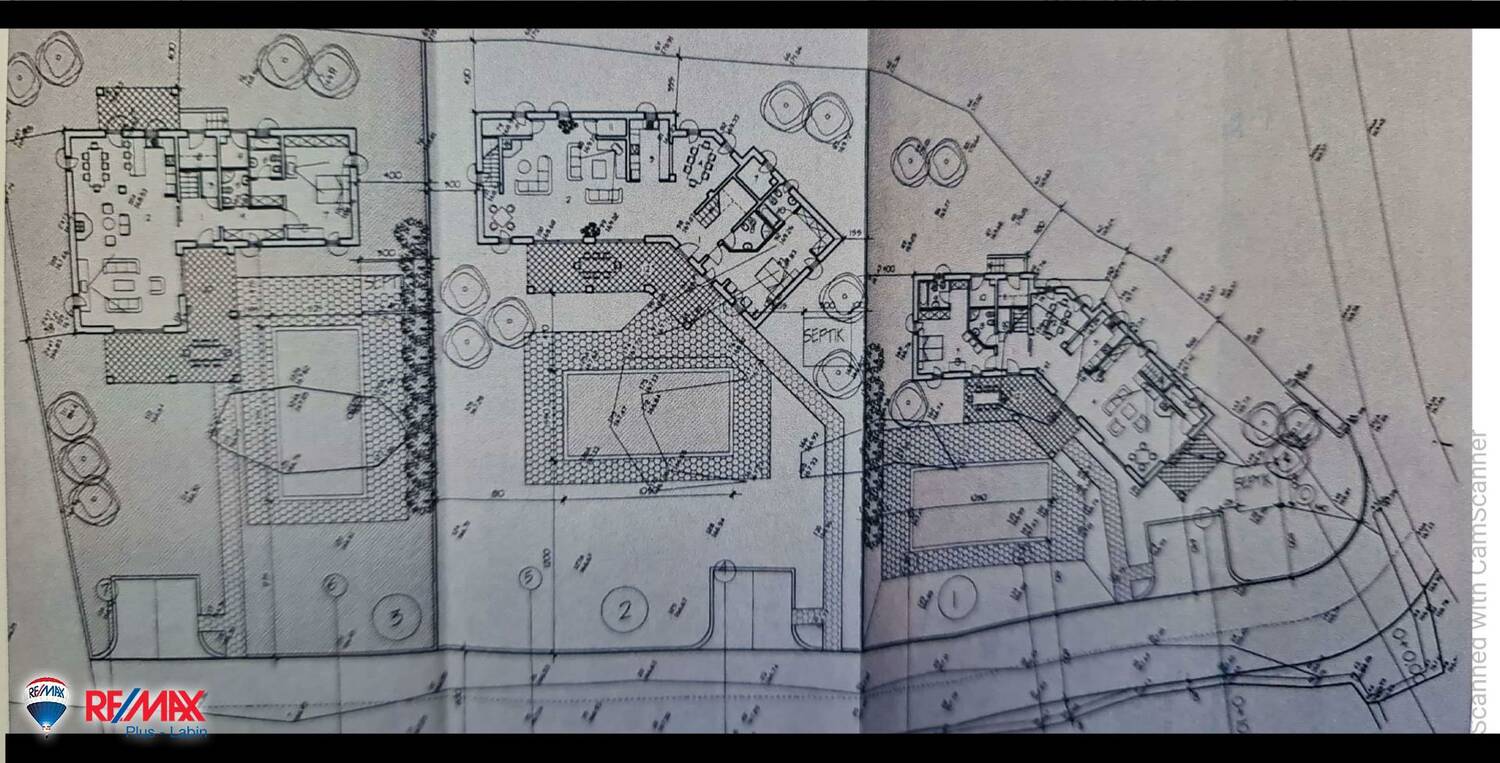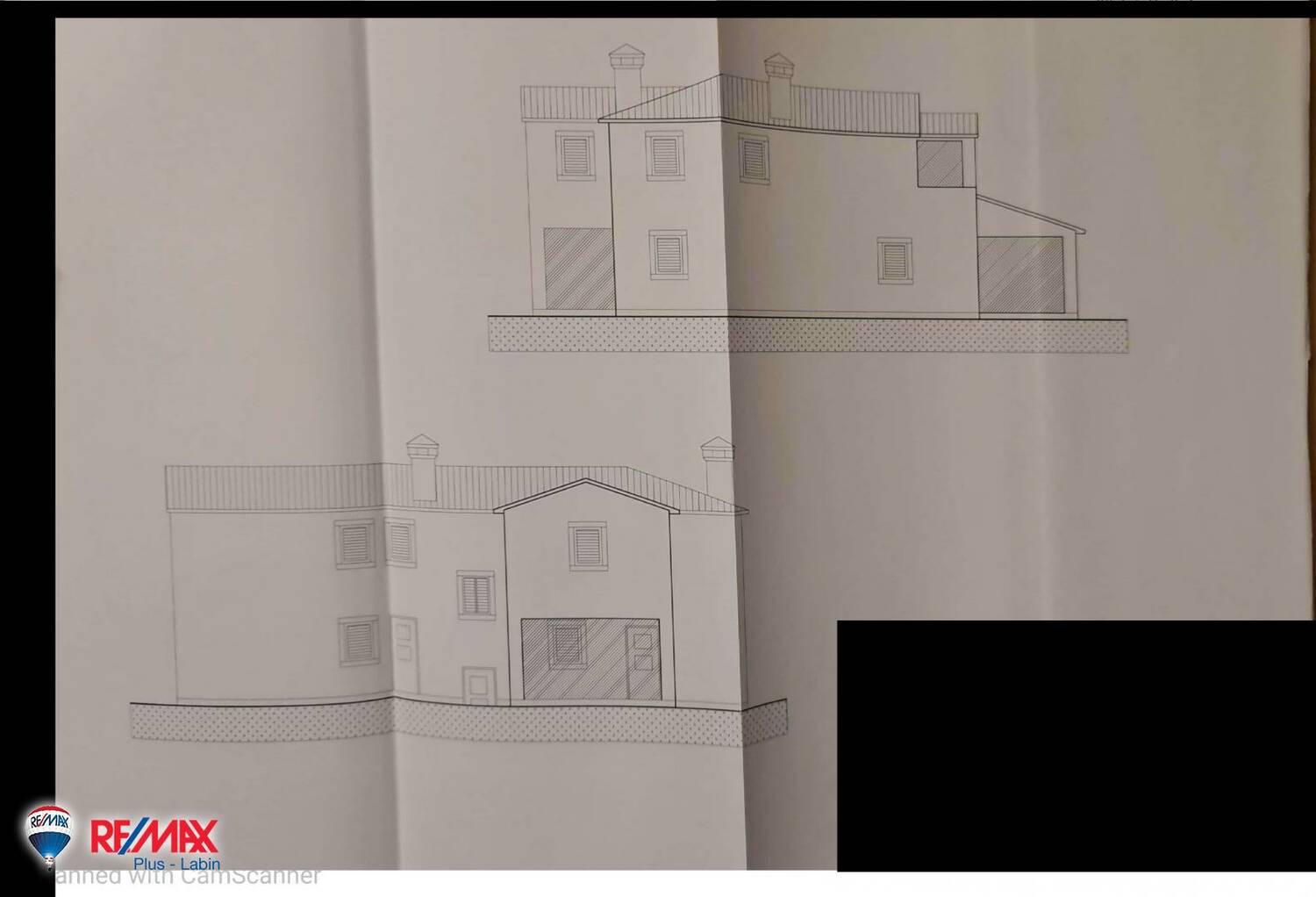 ISTRA, LABIN TRI GRAĐEVINSKE PARCELE SA PROJEKTOM I POGLED MORE