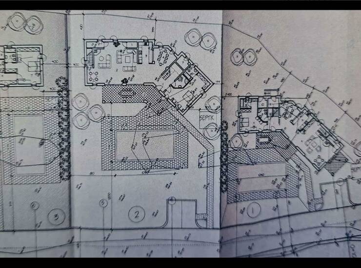 Kompleks građevinskog i poljoprivrednog zemljišta ukupne površine 6000 m2 na mirnoj i osamljenoj lokaciji sa pogledom na more.Cjelinu čine tri građevinske parcele sa projektnom dokumentacijom, ishodovanim građevinskim dozvolama i plaćenim komunalijama.Planirana je gradnja kuća za odmor na parcelama od cca.900 m2 svaka koje se sastoje od prizemlja i kata, sa vanjskim bazenom površine 50m2.Svaka buduća kuća prema projektu se sastoji od (4) četiri spavaće sobe svaka sa svojim kupatilom, dnevnog boravka sa kuhinjom i blagovaonom, spremišta i vanjskih terasa.