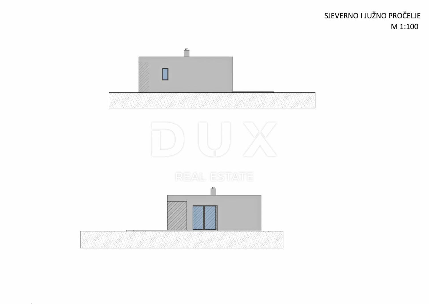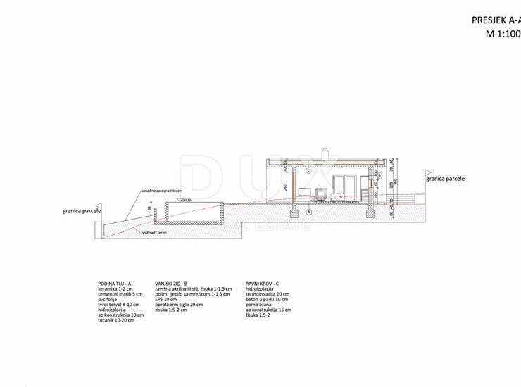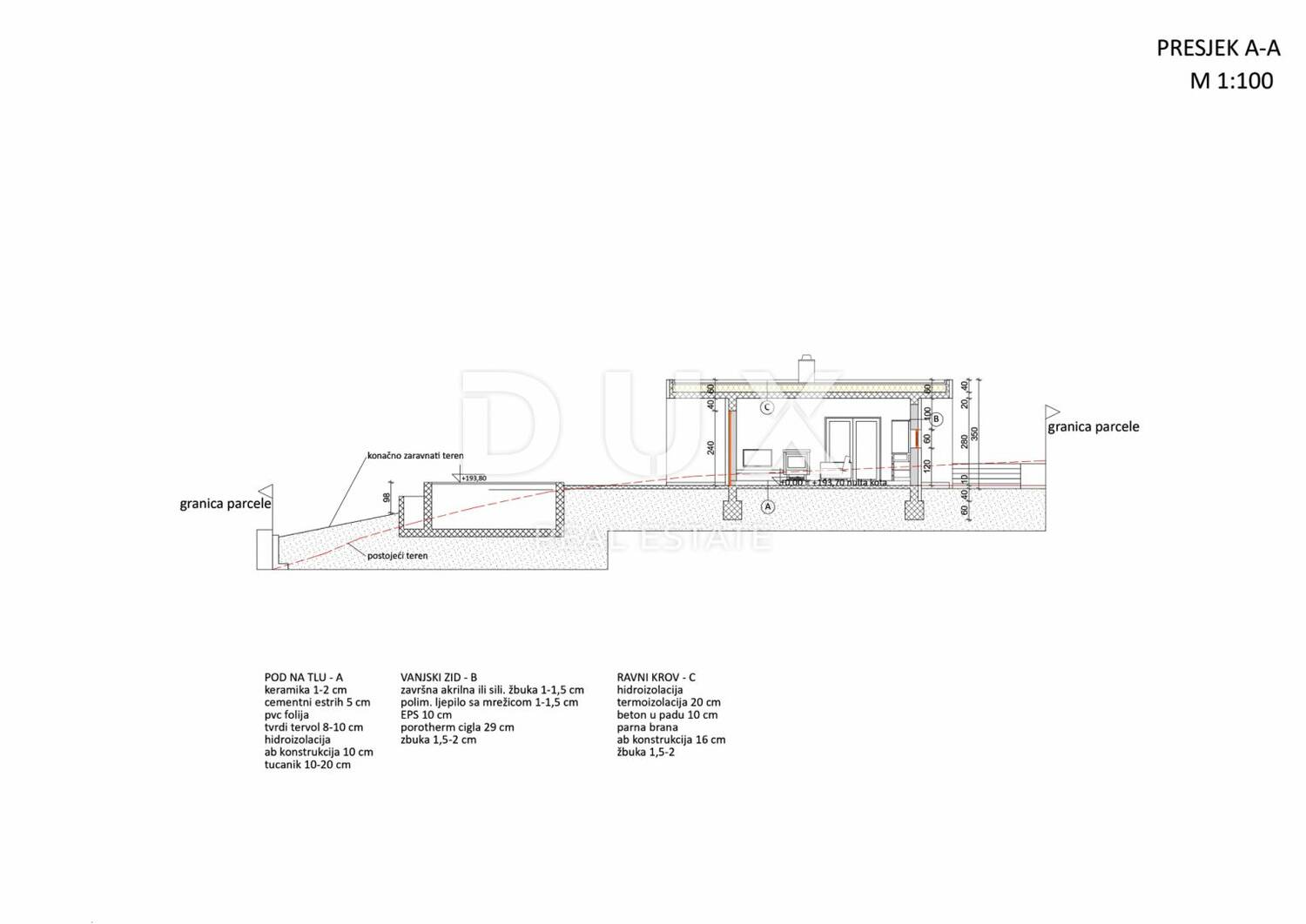 Zemljište ima pravomoćnu građevinsku dozvolu za izgradnju građevine stambene namjene koja svojom arhitekturom ne remeti okoliš već stvara sinergiju prirodnog okruženja i modernog dizajna i pomoćne građevine- bazena.