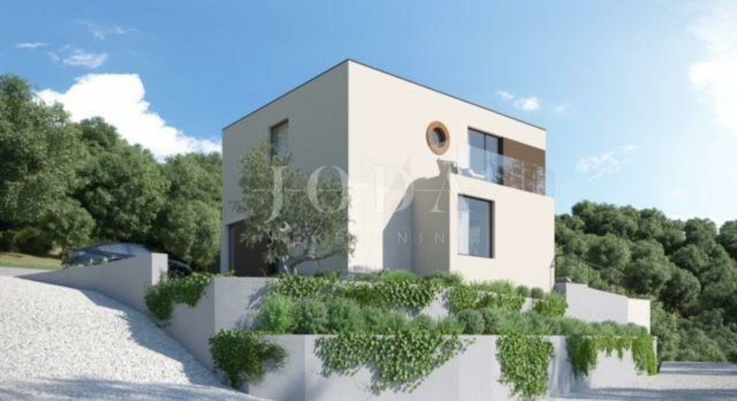 Labin, građevinski teren sa građevinskom dozvolom i predivnim pogledom na more