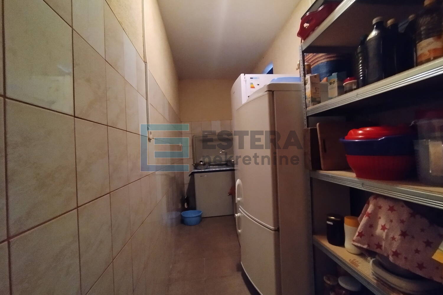 PRVI KAT kuće sastoji se od: stepeništa, hodnika, wc, kupaonice sa wc-om, spavaće sobe 1, spavaće sobe 2, sobe za rekreaciju, čajne kuhinje s blagovaonom, radnom sobom i dnevnim boravkom sa izlazom na terasu. Kuća je vrlo kvalitetno izgrađena sa termo izolacijom (10 cm), svih zidova, tavana i podova (podno grijanje). Centralno etažno plinsko grijanje (kondenzacijski bojler), sa mogućnosti grijanja putem dva velika kamina na kruto gorivo (prizemlje i kat), vanjska PVC stolarija, unutarnja drvena sa futer štokovima koji nisu samo dekorativni dodatak već i dodatni zvučni i toplinski izolator. Ručno izrađeni zidovi od kamena, podovi od kamena, laminat, keramika. Četiri klima uređaja sa opcijama grijanja i hlađenja. U sklopu kuće nalazi se prostrana garaža (ulaz s unutarnje i vanjske strane kuće). Uz uređenu i ograđe