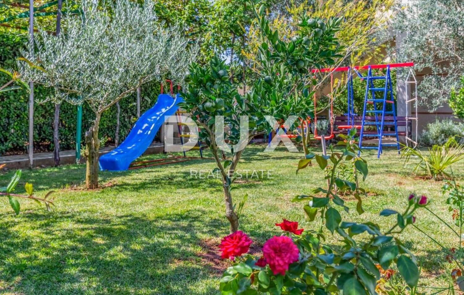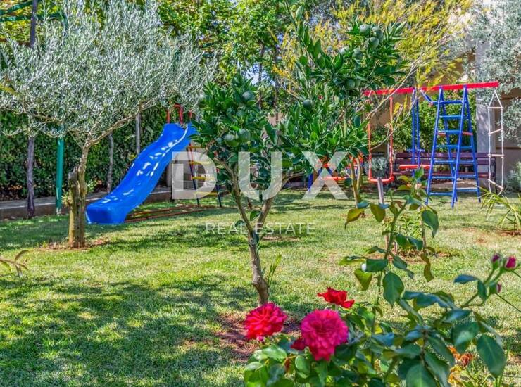 Bazen 13x7,5 sa sunčalištem, kamin, natkrivena terasa s garniturom za objed na svježem zraku, ljetna kuhinja, vanjski tuševi, vanjski wc, prostrani zeleni pojas oko kuće s voćkama i igralištem za najmlađe, stolni tenis, nogomet i dodatni sadržaji za zabavu na svježem zraku.