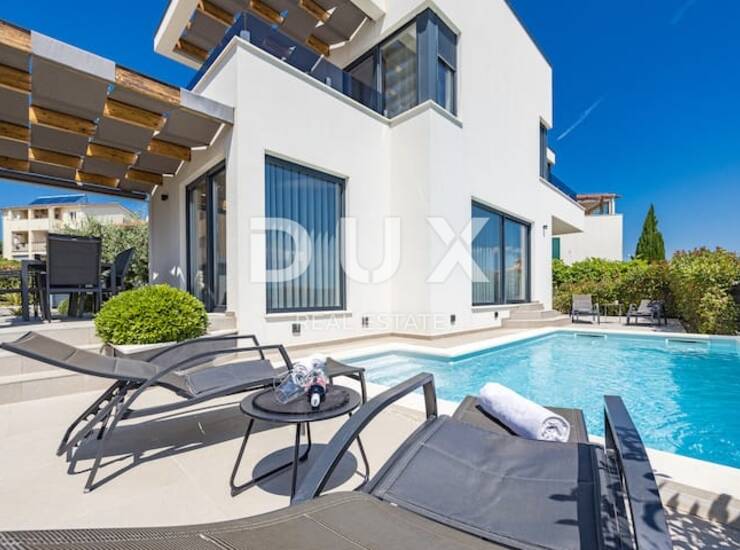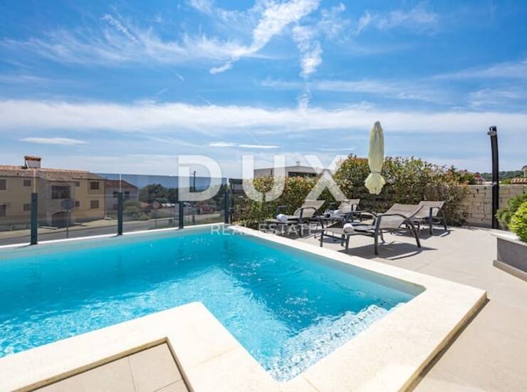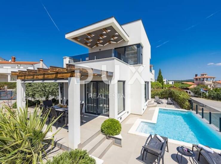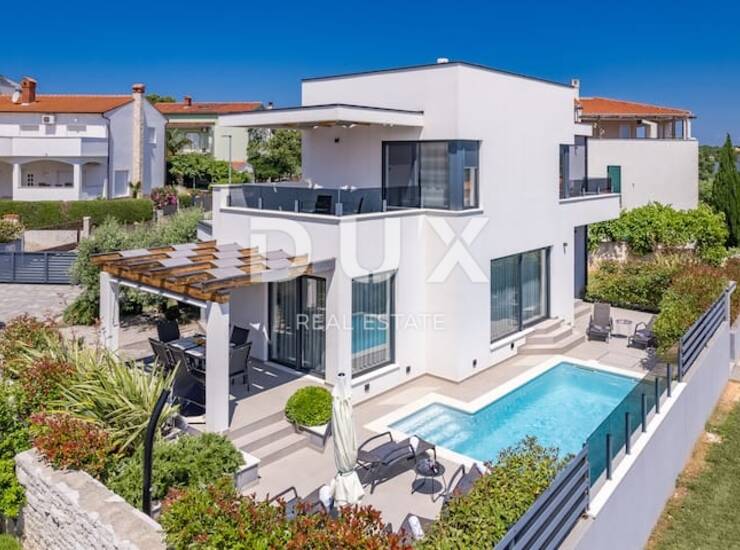 ISTRA, LIŽNJAN – Moderna samostojeća vila s bazenom i panoramskim pogledom na more, u mirnom okruženju, na svega 500m od palaža.