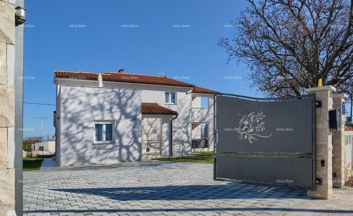 Kuća je ograđena visokom metalnom ogradom i nudi Vam Vašu privatnost.