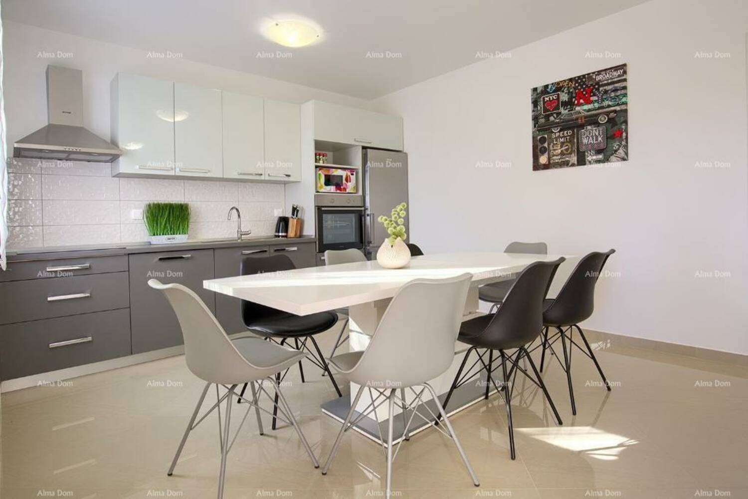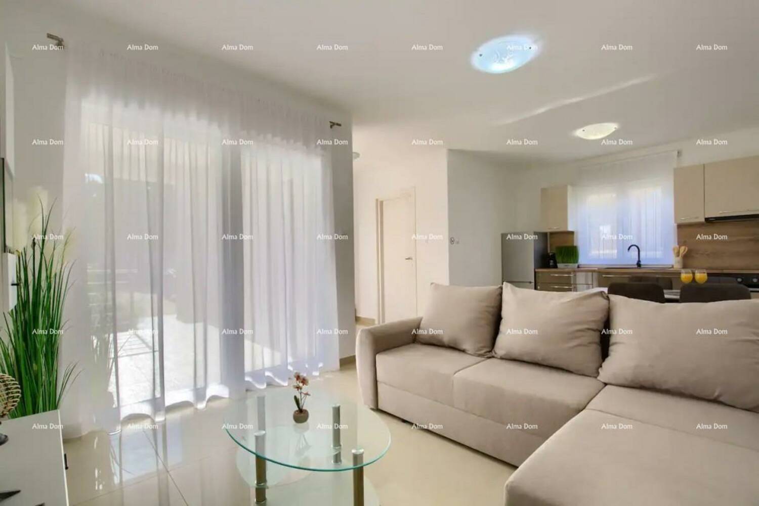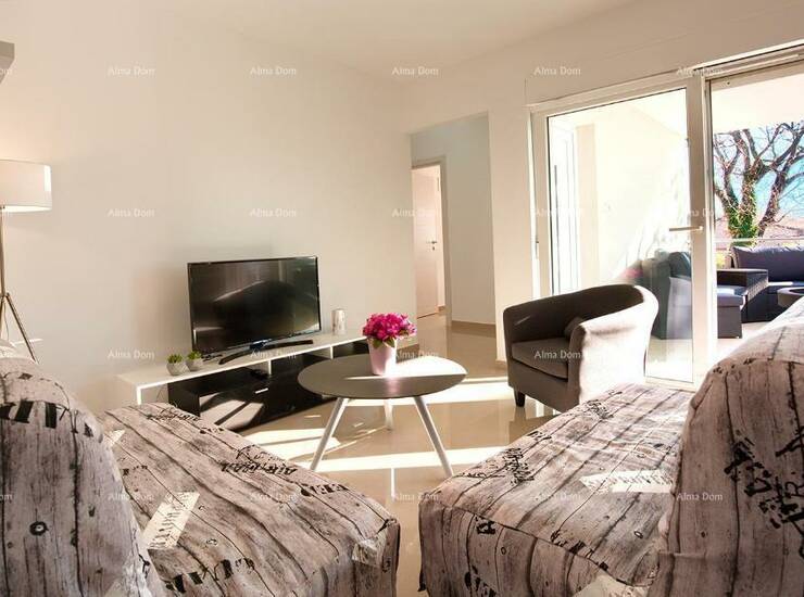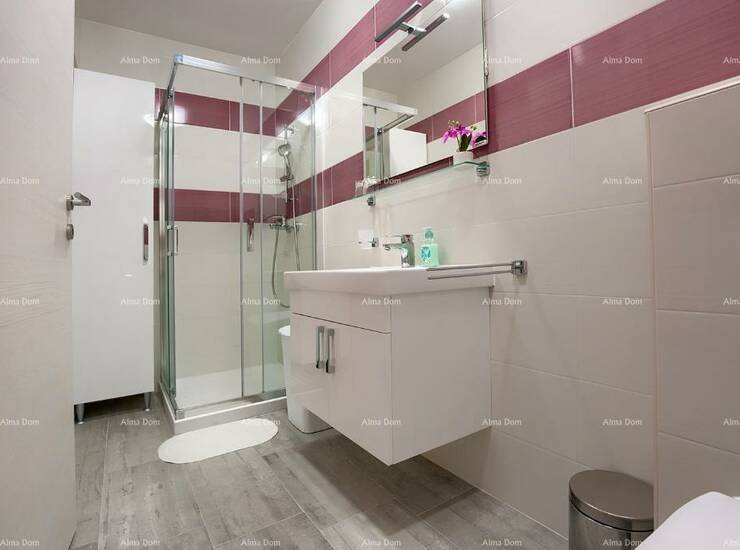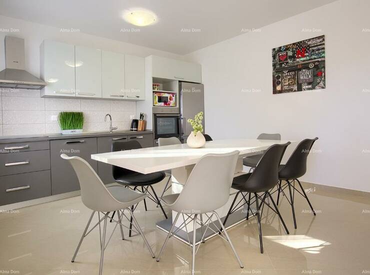 Veliki stan se sastoji od prostranog dnevnog boravka, kuhinje, tri spavaće sobe, dvije kupaonice i balkona.