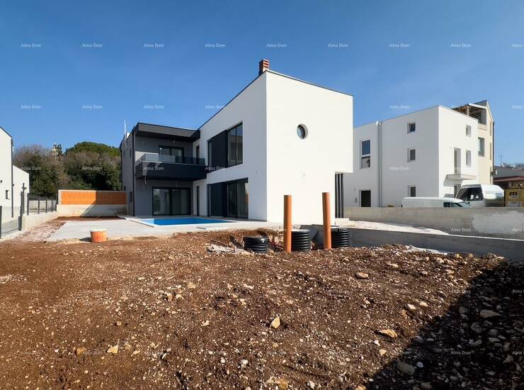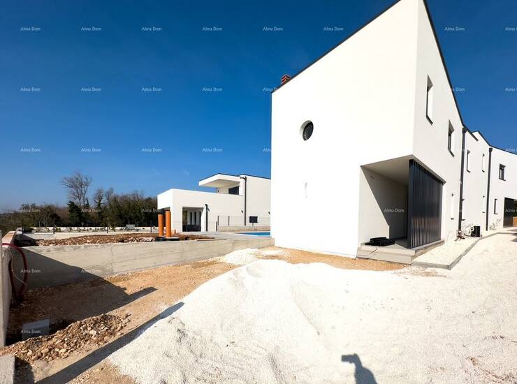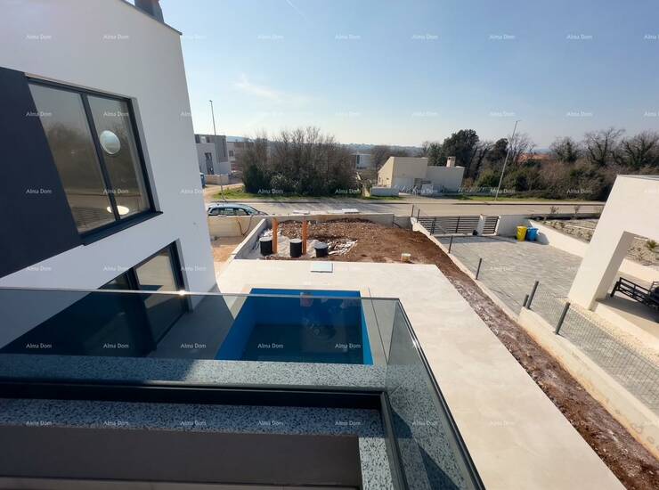Prodaje se nova kuća sa bazenom od 155 m2. Kuća ima dnevni boravak, kuhinju, blagovaonicu, spavaću sobu i kupaonicu u prizemlju. Na katu se nalaze 2 spavaće sobe, kupaonica te spremište. Iz jedne od spavaćih soba izlazi se na prostranu terasu. Prizemlje vodi do bazena. Okućnica je cca 550 m2.