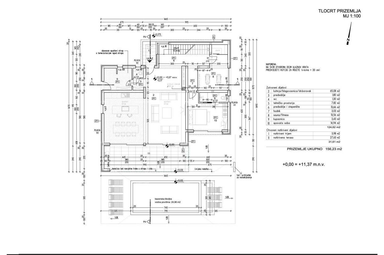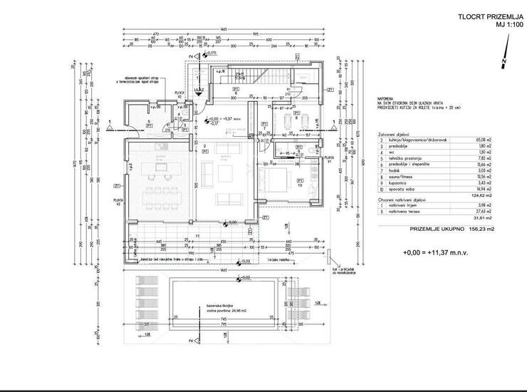 U prizemlju se također nalaze wellness / teretana, tehnička soba te u vrtu ljetna kuhinja.