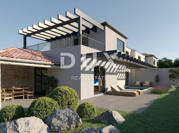 Ponosno predstavljamo projekt moderne obiteljska dvojnice smještene ne mirnoj lokaciji manjeg naselja, nadomak grada Pule i predivnih plaža. Riječ je o visoko kvalitetnoj vili vrijednoj vaše pažnje, koja svojom lokacijom svojim budućim vlasnicima nudi maksimalan mir i privatnost, ali i dalje nadomak svog potrebnog sadržaja za svakodnevni miran i siguran obiteljski život. Tako se ova vrhunska vila nalazi smještena na rubnom djelu manjeg naselja u mirnoj i slijepoj ulici, nadomak centra naselja sa svim potrebnim sadržajem od trgovina, restorana, kafića i tome slično, dok se jednako tako na svega 3 km od vile nalaze predivne prirodne plaže s otvorenim pogledom prema Kvarnerskim otocima i s kristalno čistim morem.