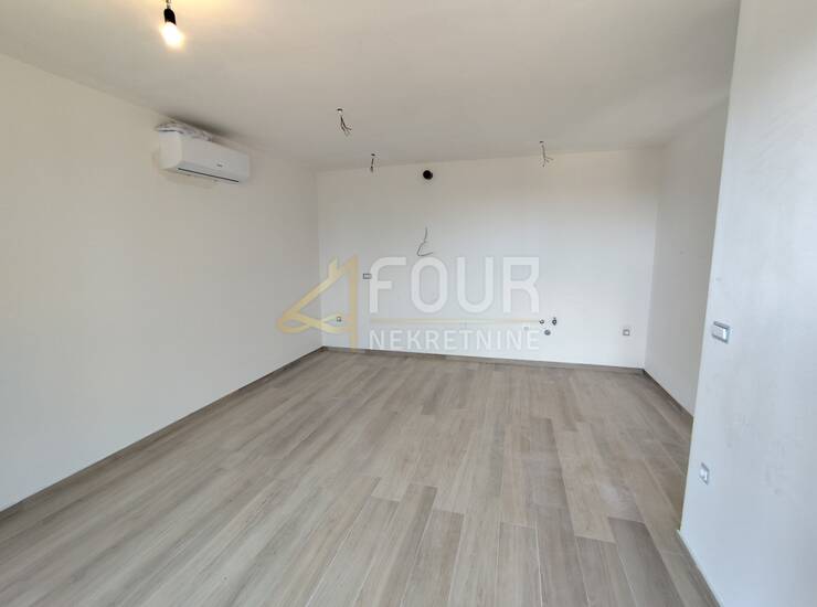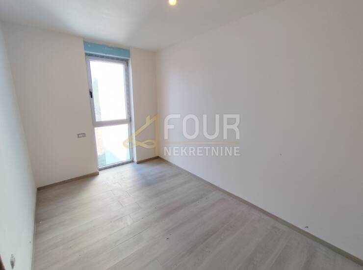 U stanu je postavljena keramika, PVC stolarija, električne rolete, podno grijanje i klima uređaj.