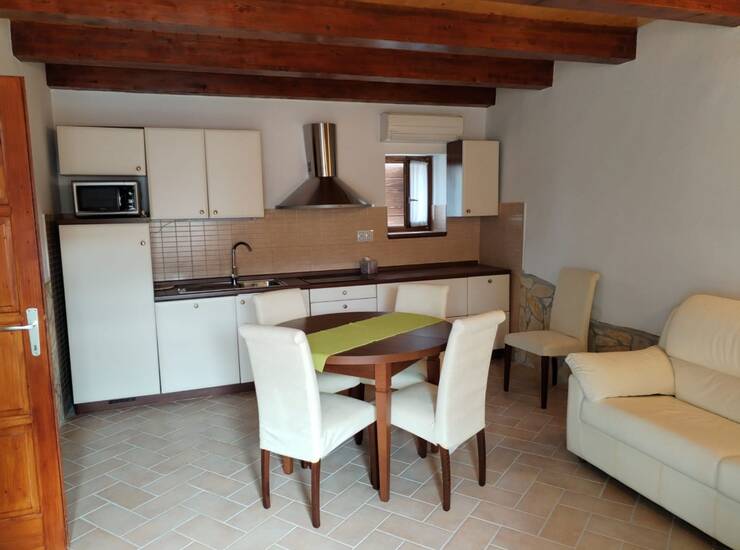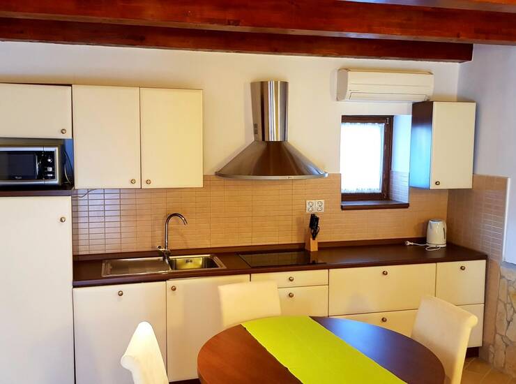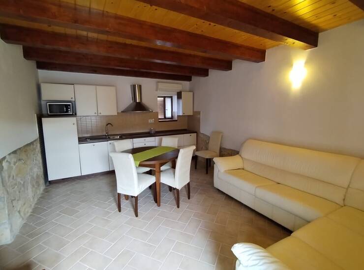 U prizemlju se nalazi ulazni hodnik, kuhinja, blagovaonica i dnevni boravak te kupaonica. Unutarnjim stepenicama penjemo se na prvu etažu gdje se smjestilo predsoblje, jedna prostrana spavaća soba i kupaonica.