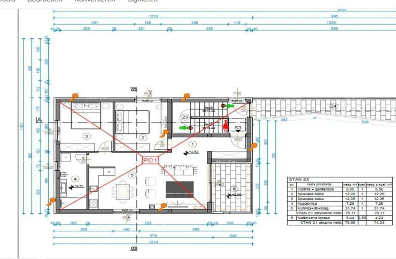 - 78 m2 (3 333 €/m2)