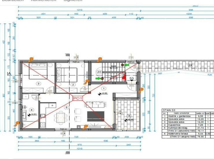 Stan se nalazi na 1. katu stambene zgrade izgrađene 2025. godine te ima ukupnu površinu 78,55 m². Projektiran je suvremeno i funkcionalno, s naglaskom na udobnost i prirodnu svjetlost.