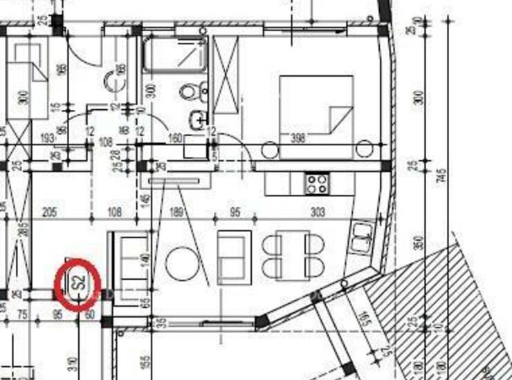 Na prodaju je stan S2 smješten u prizemlju stambene zgrade, na odličnoj lokaciji u neposrednoj blizini centra grada. Stan se sastoji od dvije spavaće sobe, dnevnog boravka povezanog s kuhinjom i blagovaonicom, kupaonice te prostrane terase površine 9,52 m², idealne za opuštanje i boravak na otvorenom.