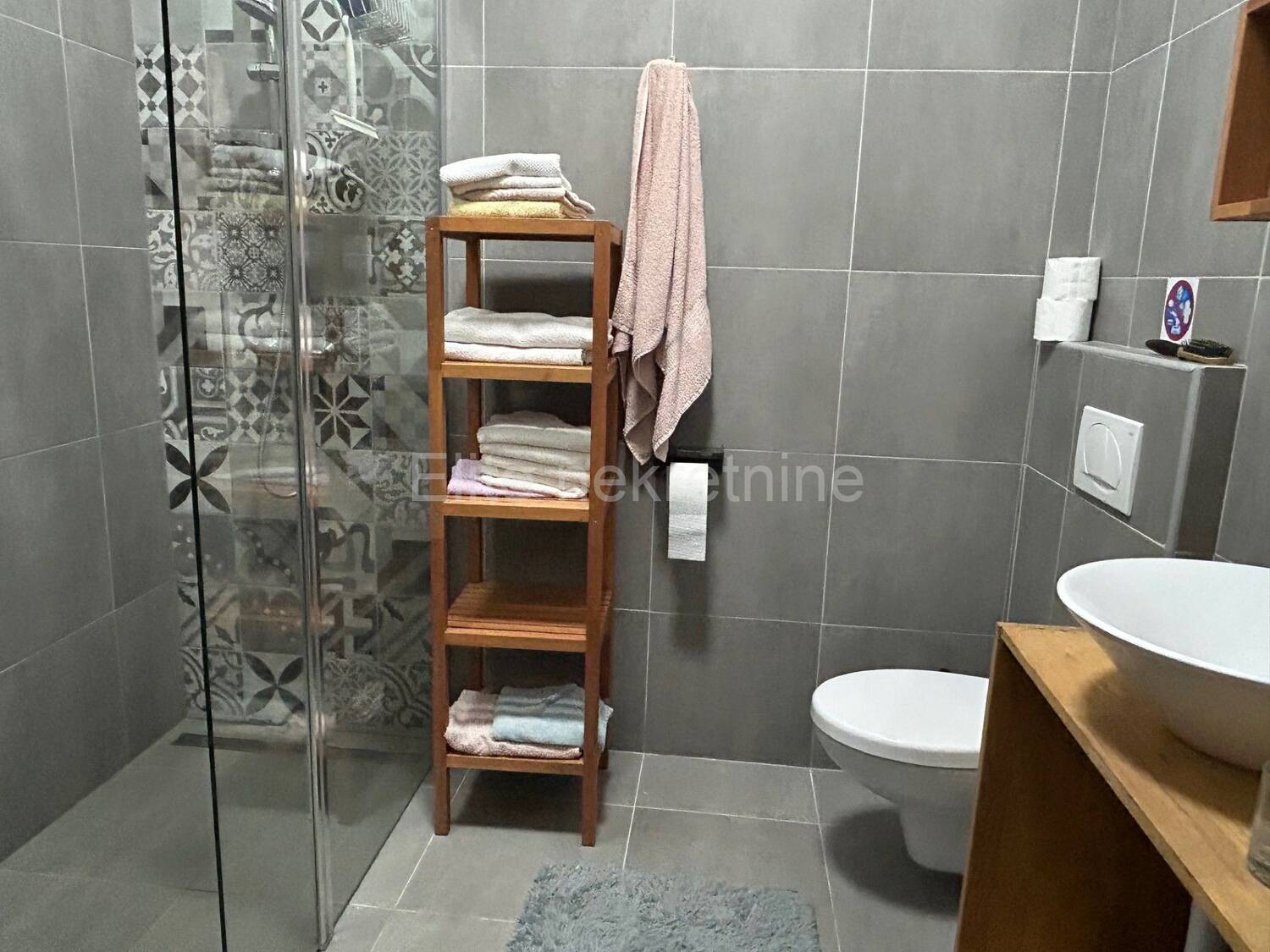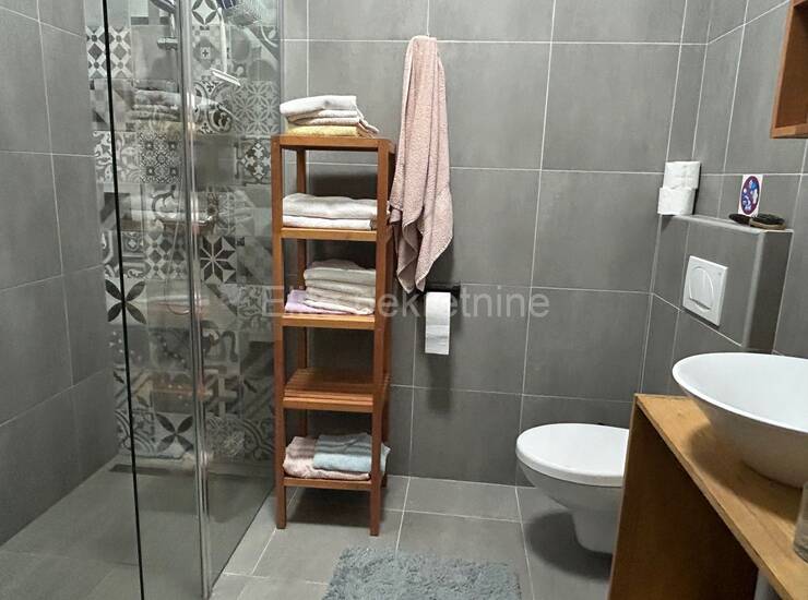 Ima 4 spavaće sobe, veliki, svjetli, dnevni prostor, 2 kupaonice, 2 spremišta, vlastiti bazen i privatno dvorište. Stanu pripada 2 parkirna mjesta u dvorištu.Kvalitetna i suvremena oprema je u cijelom prostoru. Interijer i eksterijer su potpuno uređeni i ne traže nikakva dodatna ulaganja. Spreman je za opuštanje i uživanje na otvorenom.Ima podno grijanje što pruža komfor tijekom cijele godine