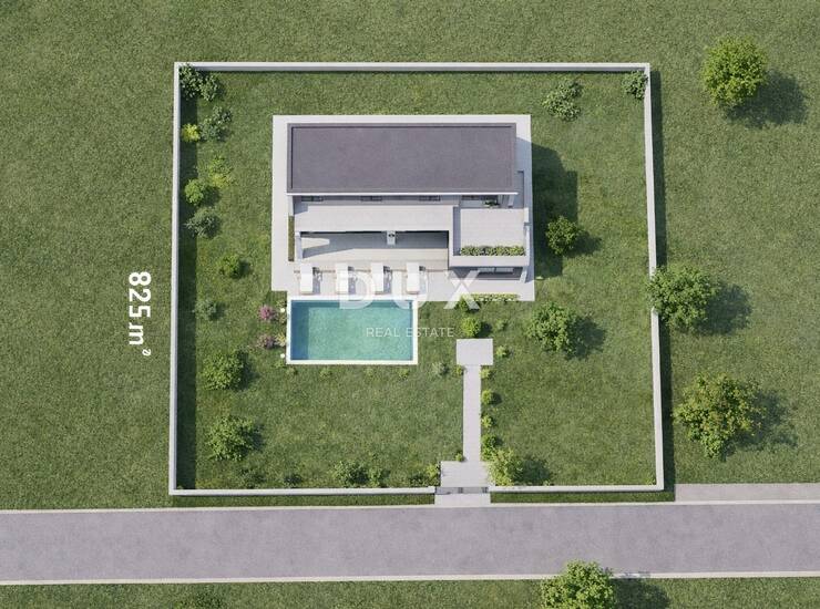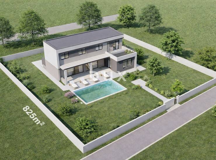 -Zemljište ima projekt za izgradnju moderne slobodnostojeće obiteljske kuće (2.b skupine) s vanjskim bazenom.