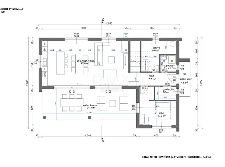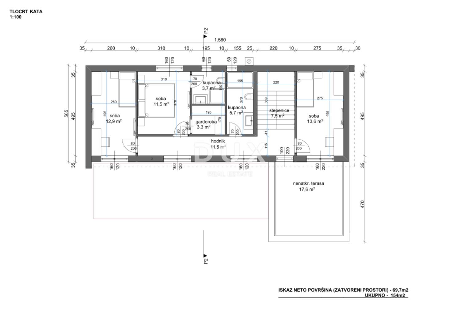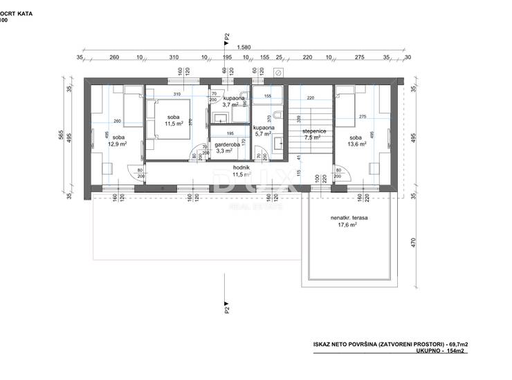 Predviđena ukupna neto površina kuće: 154 m²