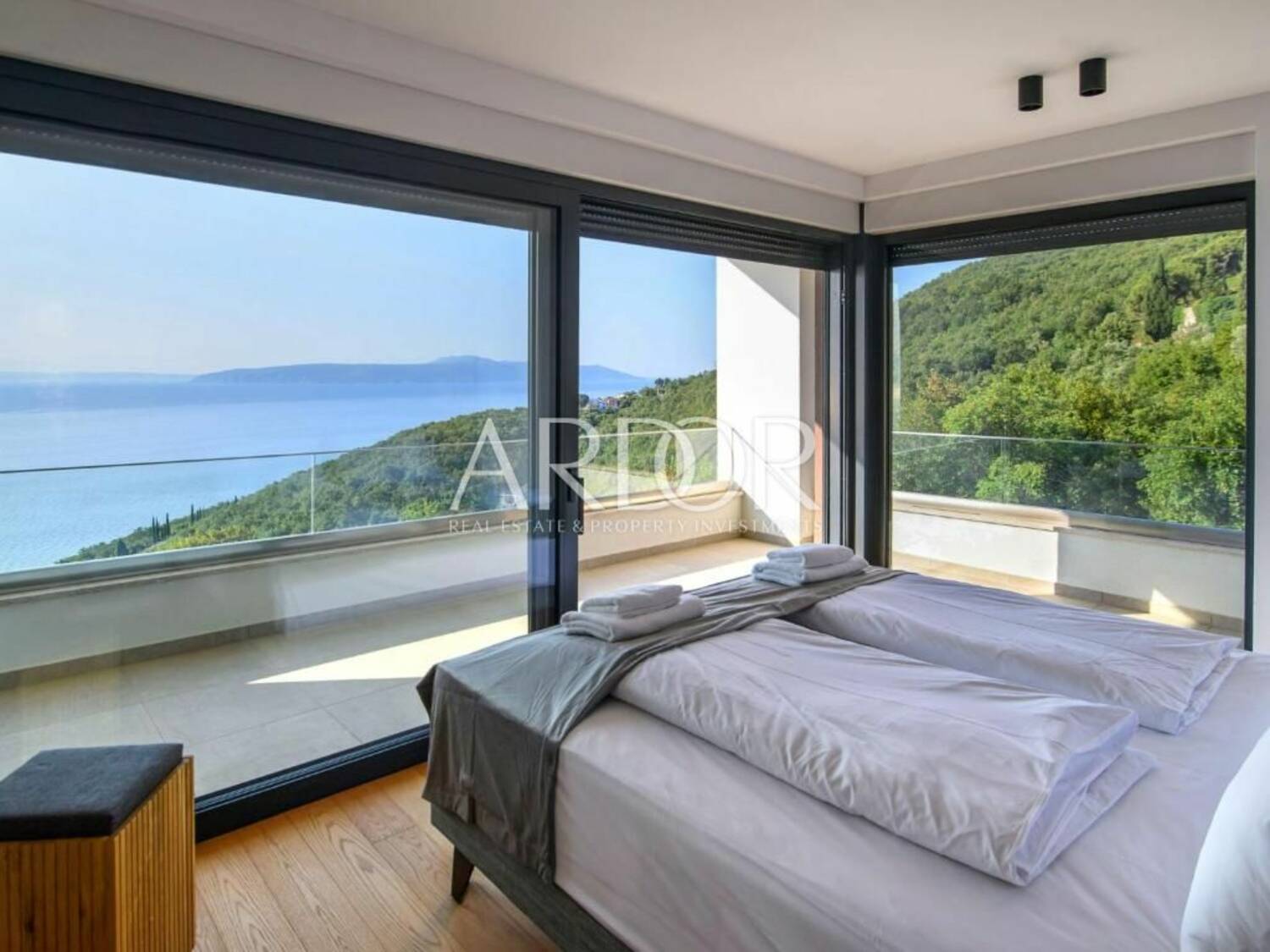 Dnevni boravak opremljen je namještajem renomirane talijanske marke Natuzzi, dok sustav grijanja i hlađenja putem dizalice topline Daikin, uz podno grijanje i klimatizaciju u svim prostorijama, jamči optimalnu temperaturu tijekom cijele godine.