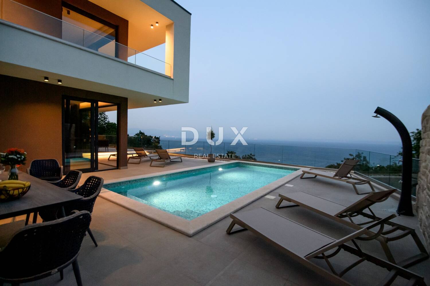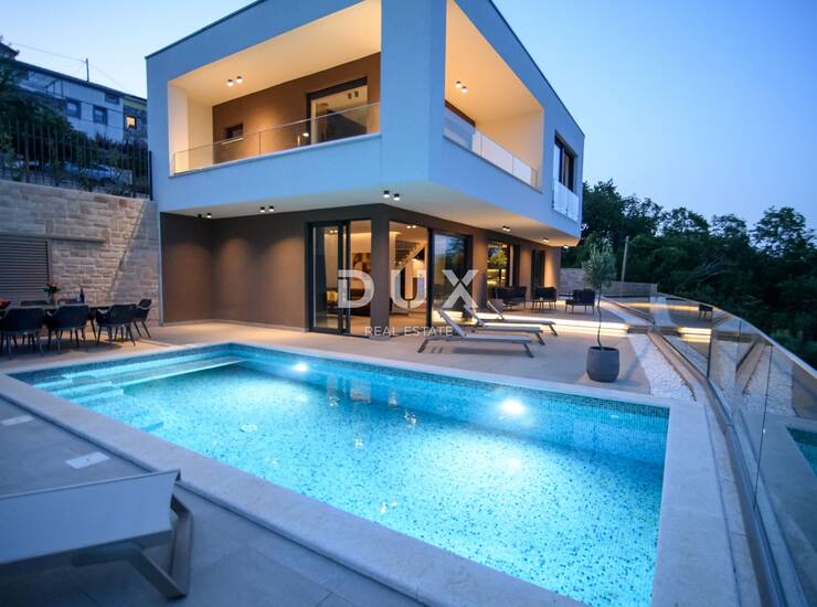 Iz svih prostorija ove luksuzne nekretnine pruža se senzacionalan pogled na Kvarnerski zaljev i otoke.