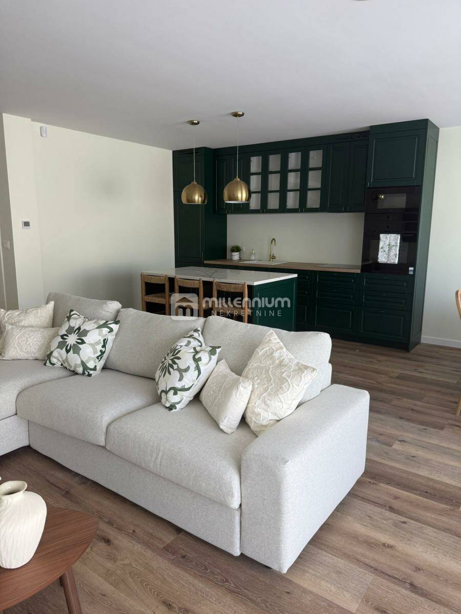 U mirnom i zelenilom okruženom dijelu Lovrana, na samo nekoliko minuta od mora, nalazi se ovaj moderan i potpuno opremljen stan u novogradnji, ukupne površine 97.89m² – savršen spoj udobnosti, funkcionalnosti i suvremenog načina života.