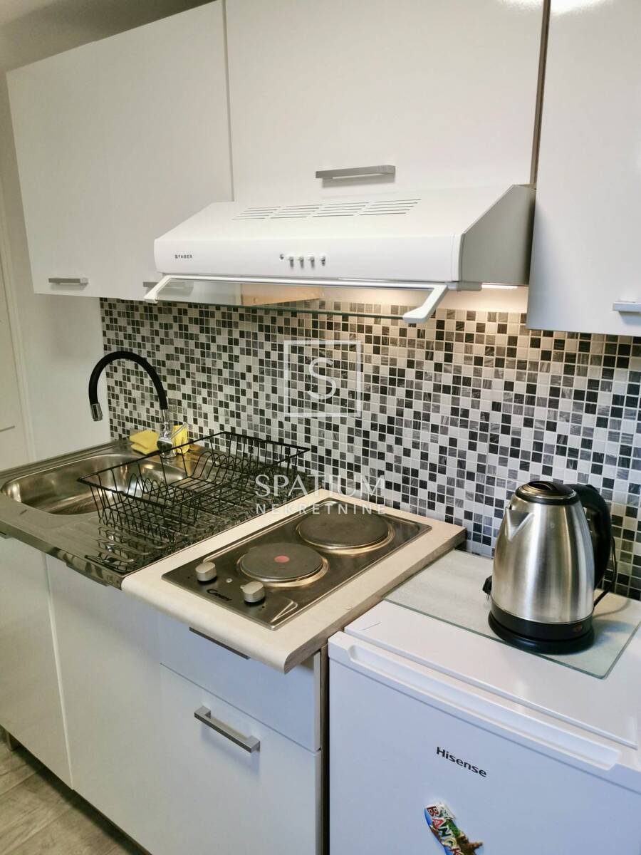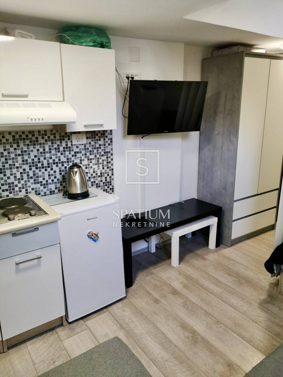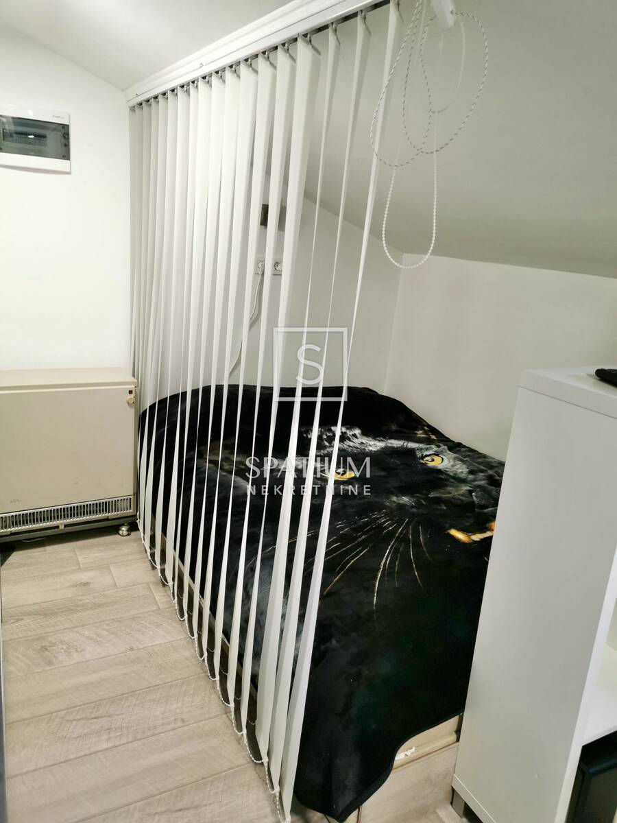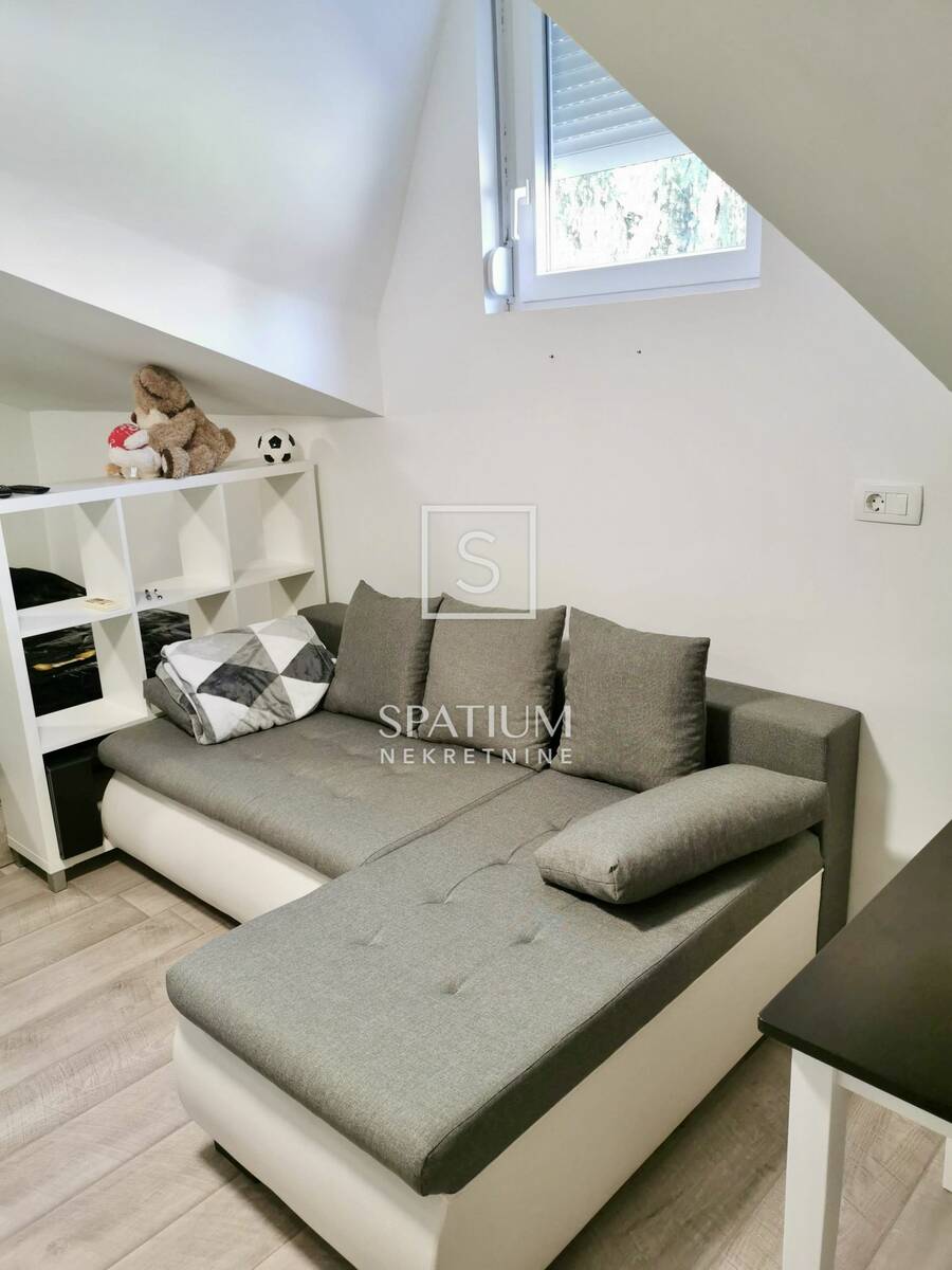 Druga jedinica izvedena je kao garsonijera koja ostvaruje dobar godišnji povrat investicije kroz kratkoročni najam. Garsonijera je u potpunosti uređena 2019. godine. Stan ima dva klima-uređaja i peć na pelete, a garsonijera ima jedan klima-uređaj.