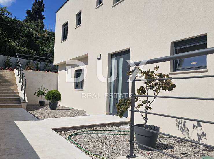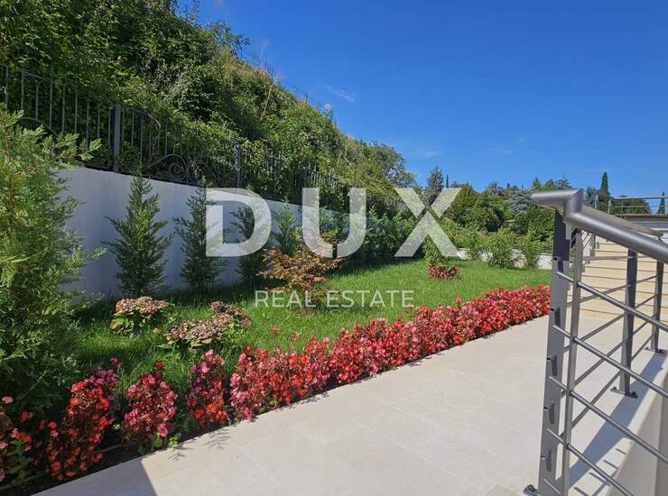 U ponudi imamo ekskluzivan stan u prizemlju luksuzne vile blizu centra Lovrana, 141 m², s vlastitim bazenom i fantastičnim pogledom na more.