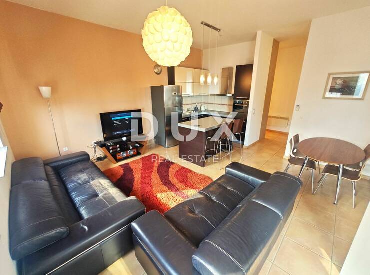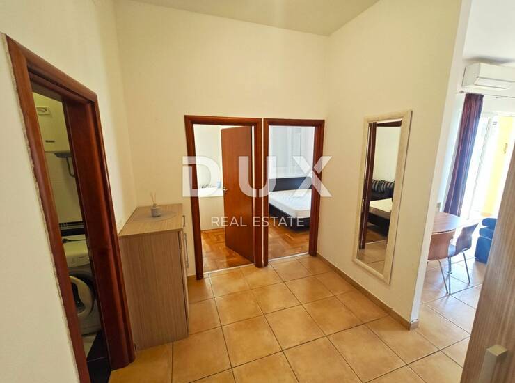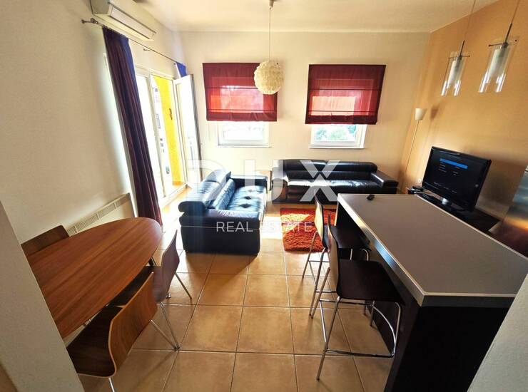 Stan površine 70 m2 se sastoji od dnevnog boravka s kuhinjom i blagovaonicom, dvije spavaće sobe, kupaonice, ulaznog hodnika i balkona. Uredan i bez potrebnih ulaganja. Krase ga visoki stropovi. Prodaje se kompletno namješten. Opremljen je klima uređajem i radijatorima na struju. Pripada mu jedno parkirno mjesto u vlasništvu.
