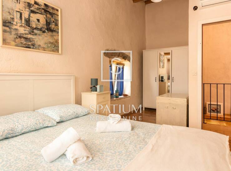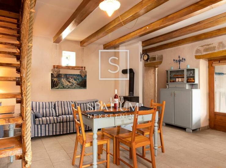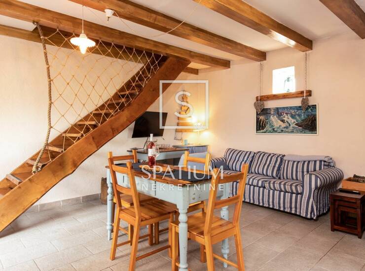U prizemlju je smješten dnevni boravak s kuhinjom i blagovaonom a unutarnje stepenice vode na kat gdje se nalaze dvije spavaće sobe i kupaona.