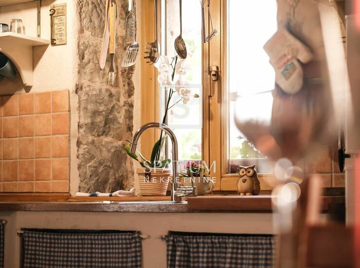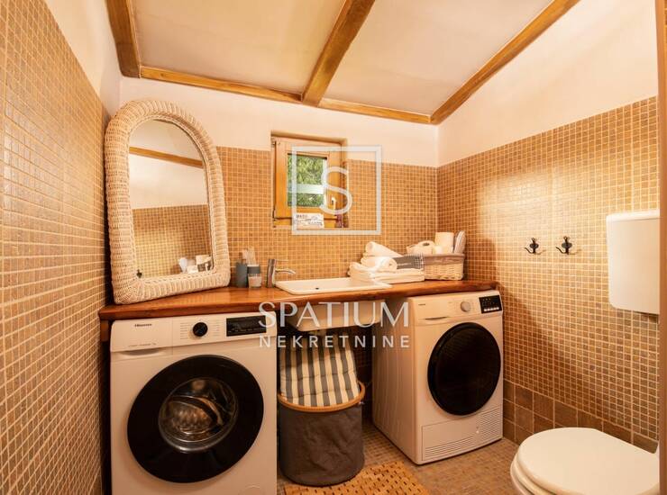 Uz terasu nalazi se roštilj, vrtna kućica i montažni bazen koji su smješteni tako da osiguravaju potpunu privatnost a kuća koja je uređena s puno pažnje i ukusa kako bi se postigao odličan i topao ambijent, prodaje se kompletno namještena i opremljena.