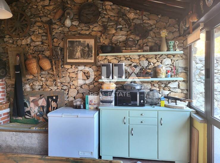 Na rubu malog naselja, smjestila se adaptirana kamena kuća, smještena na okućnici površine 1989 m². Kuća se prostire na dvije etaže, ukupne površine 66 m². U prizemlju se nalazi ugodan dnevni prostor s kupaonicom, dok je na katu smještena spavaća soba i galerija, koja se može koristiti kao dnevni boravak ili ured.