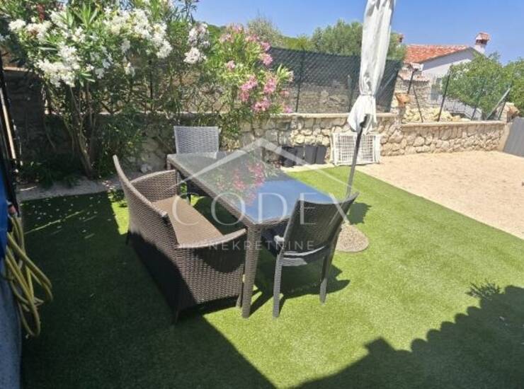 Nekretnina je pažljivo održavana te opremljena klimatskim uređajima na oba kata, što osigurava ugodan boravak tijekom toplih ljetnih mjeseci. U prizemlju se nalazi ugodan dnevni boravak povezan s novom, funkcionalno uređenom kuhinjom, kupaonica te praktična ostava. Prostor odiše toplinom i jednostavnošću, uz zadržane elemente tradicionalne arhitekture.