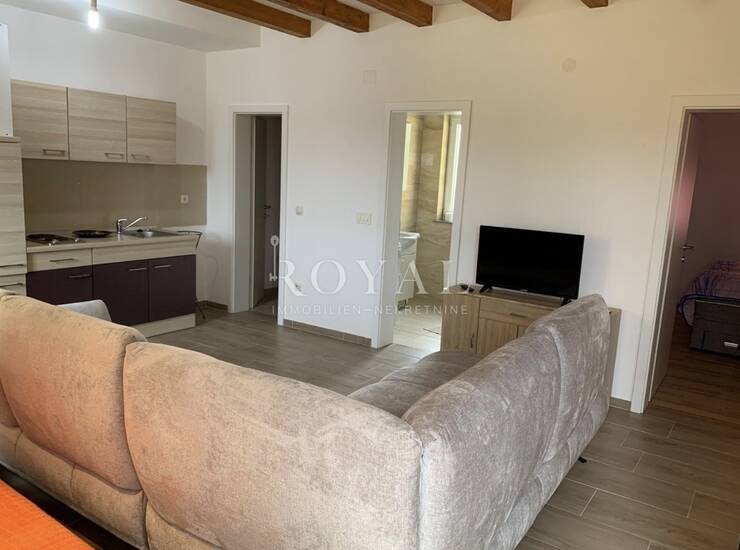 Prostor je funkcionalnog rasporeda i pruža ugodan boravak tijekom cijele godine. Terasa omogućuje uživanje na svježem zraku i mediteranskoj klimi.