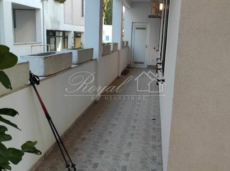 PRODAJE SE DVOSOBNI APRTAN NA SAMO 50M OD MORA. APARTMAN SE SASTOJI OD KUHINJE, DNEVNOG BORAVAK, SPAVAĆE SOBE, DVIJE KUPAONE, SPREMIŠTA I NATKRIVENE TERASE. DVORIŠTE JE UREĐENO IOKRUŽENO ZELENILOM.