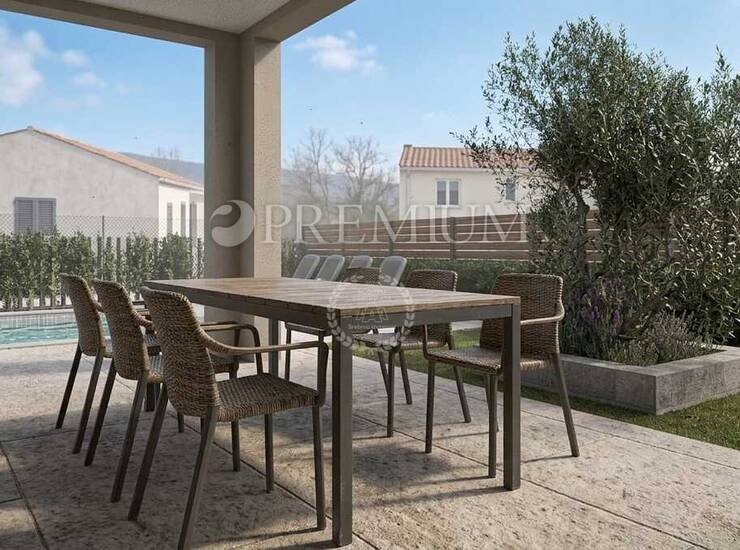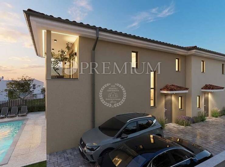 Malinska, u ponudi je nova dvojna kuća s okućnicom, bazenom i pogledom na more!