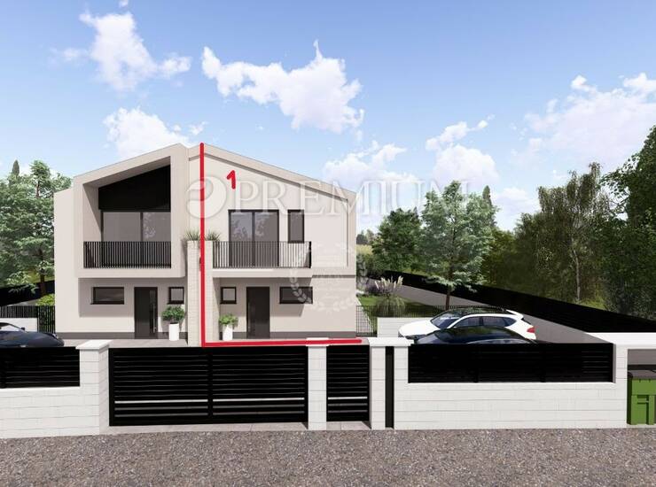 Malinska, prodaje se moderna dvojna kuća s bazenom, površine 121 m², na rubu građevinske zone.