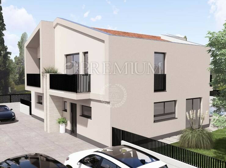 Okućnica površine cca 200m2 s bazenom površine 15m2 i sunčalištem uključuje automatsko navodnjavanje, a kući pripadaju dva parkirna mjesta.