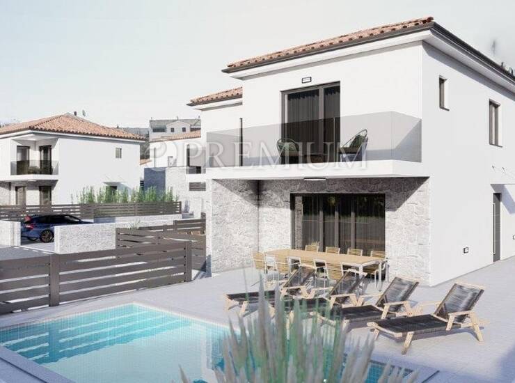 MALINSKA, NOVOGRADNJA S BAZENOM I POGLEDOM NA MORE