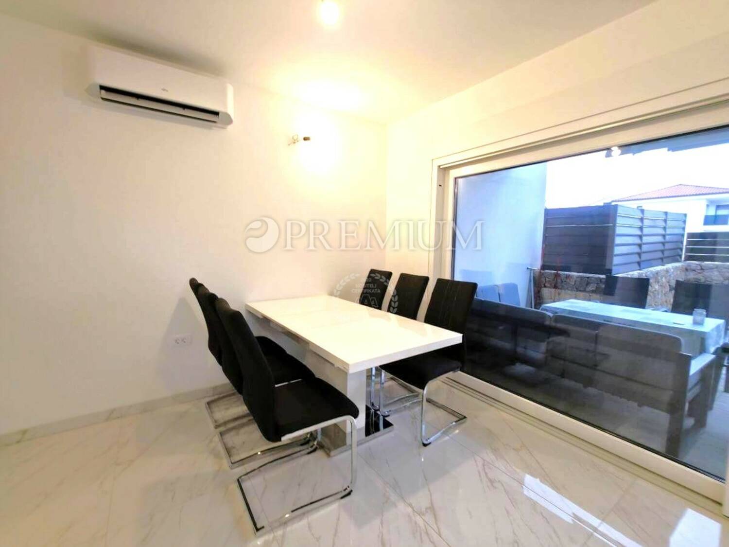 Prizemlje obuhvaća jednu spavaću sobu, kupaonicu, te kuhinju s blagovaonicom i dnevnim boravkom koji ima izlaz na lijepu natkrivenu terasu i uređenu okućnicu od 155 m2, na kojoj se nalazi grijani bazen površine 14 m², vanjski tuš i roštilj – idealno za uživanje tijekom cijele sezone.