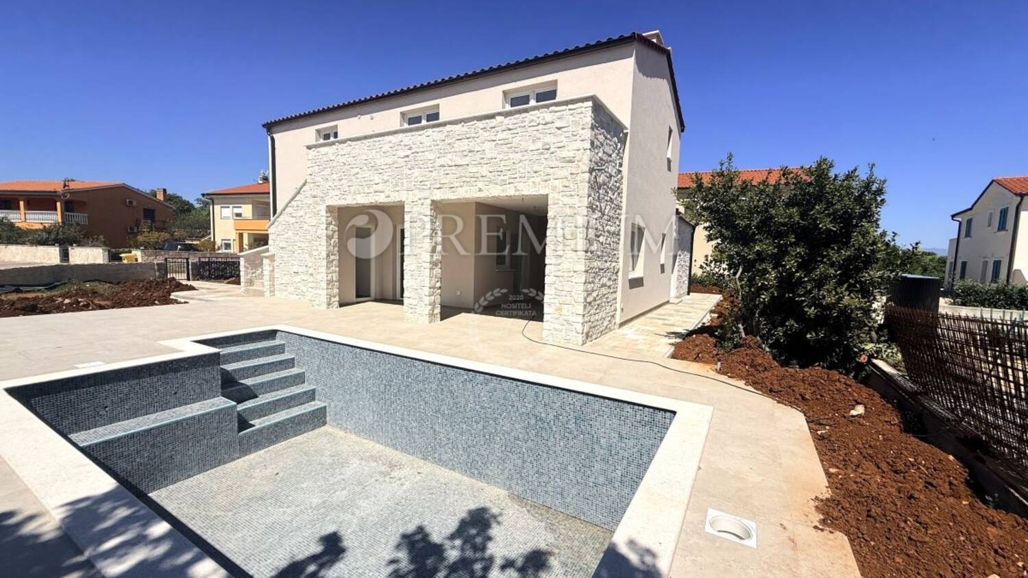 U nastavku terase smješten je bazen sa sunčalištem, dok se iza kuće nalazi parkirni prostor za tri automobila.