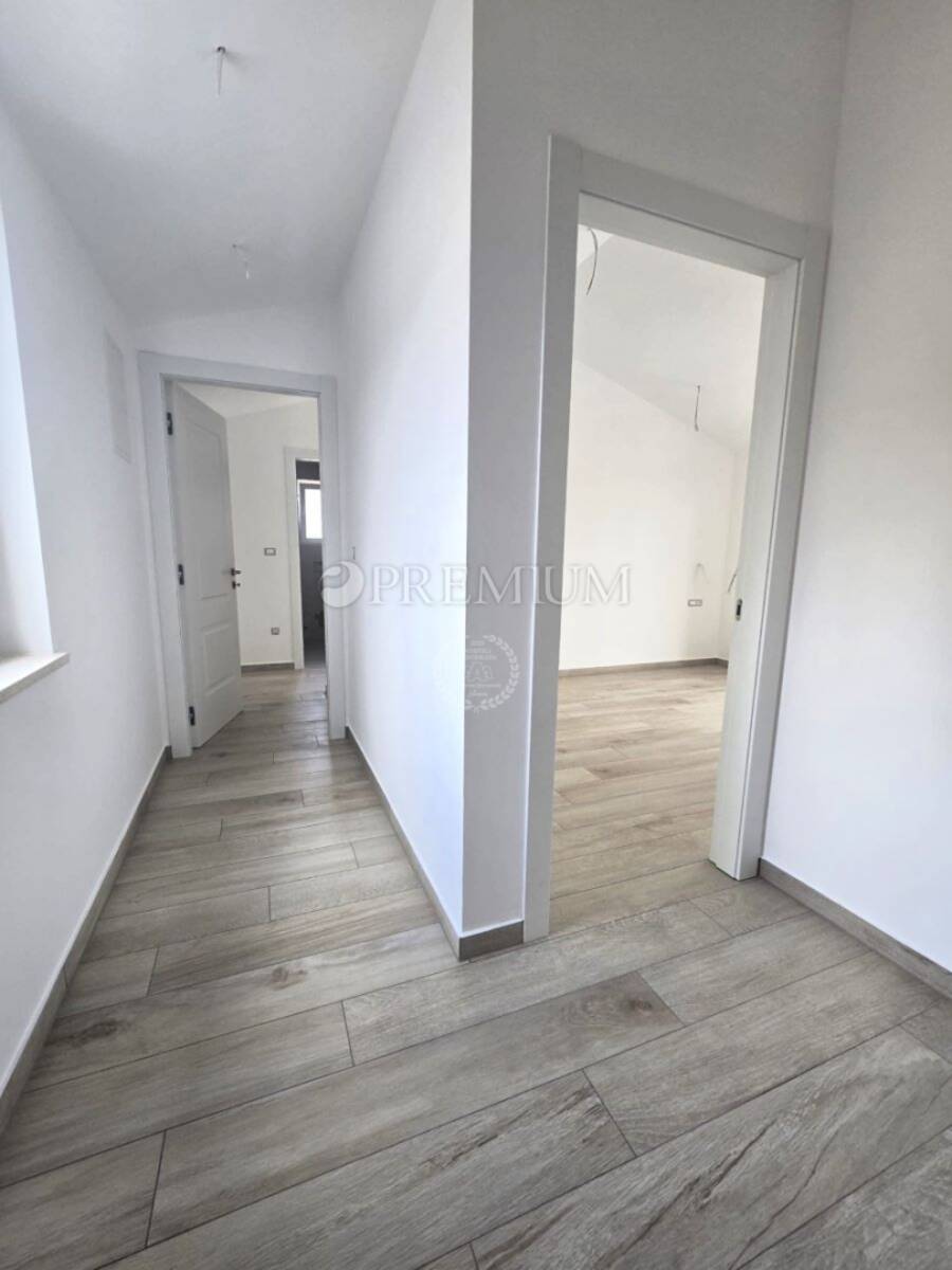 Na prvom katu nalazi se hodnik, tri spavaće sobe, svaka s vlastitom kupaonicom. Dvije spavaće sobe imaju izlaz na terasu s pogledom na zelenilo, što prostoru daje dodatnu dozu privatnosti i mira.