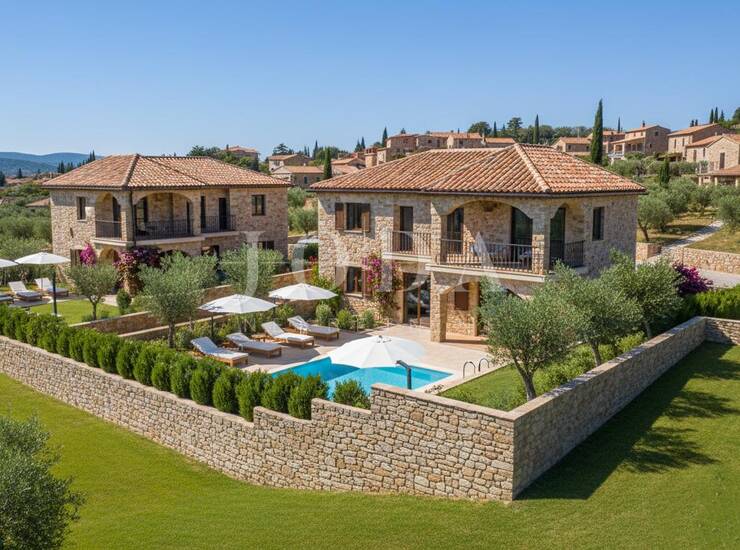 Okućnica će uključivati bazen s elektrolizom te će biti hortikulturno uređena, uz sadnju starih maslina.