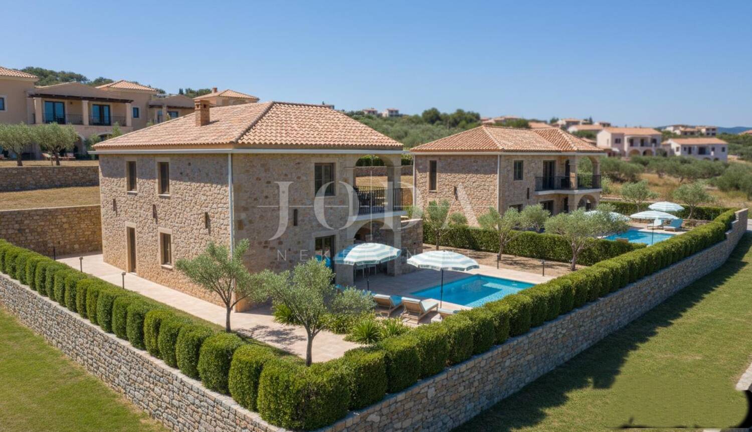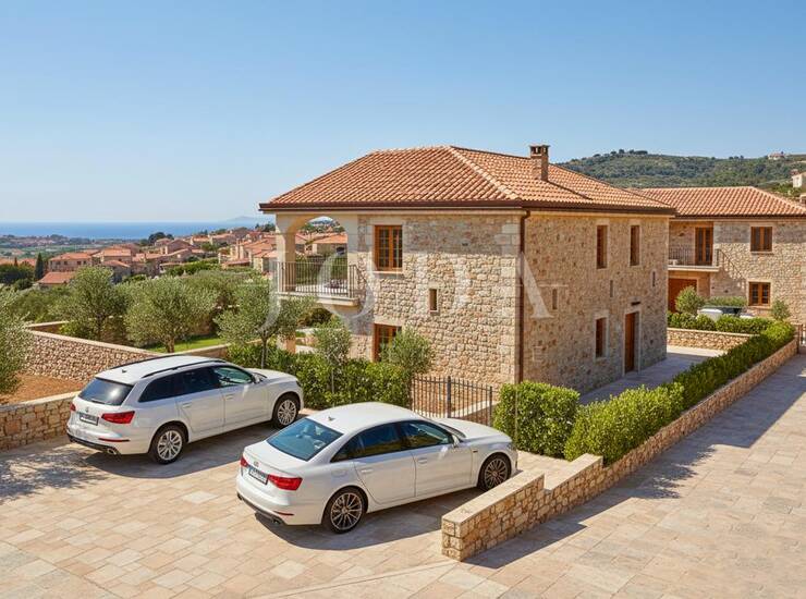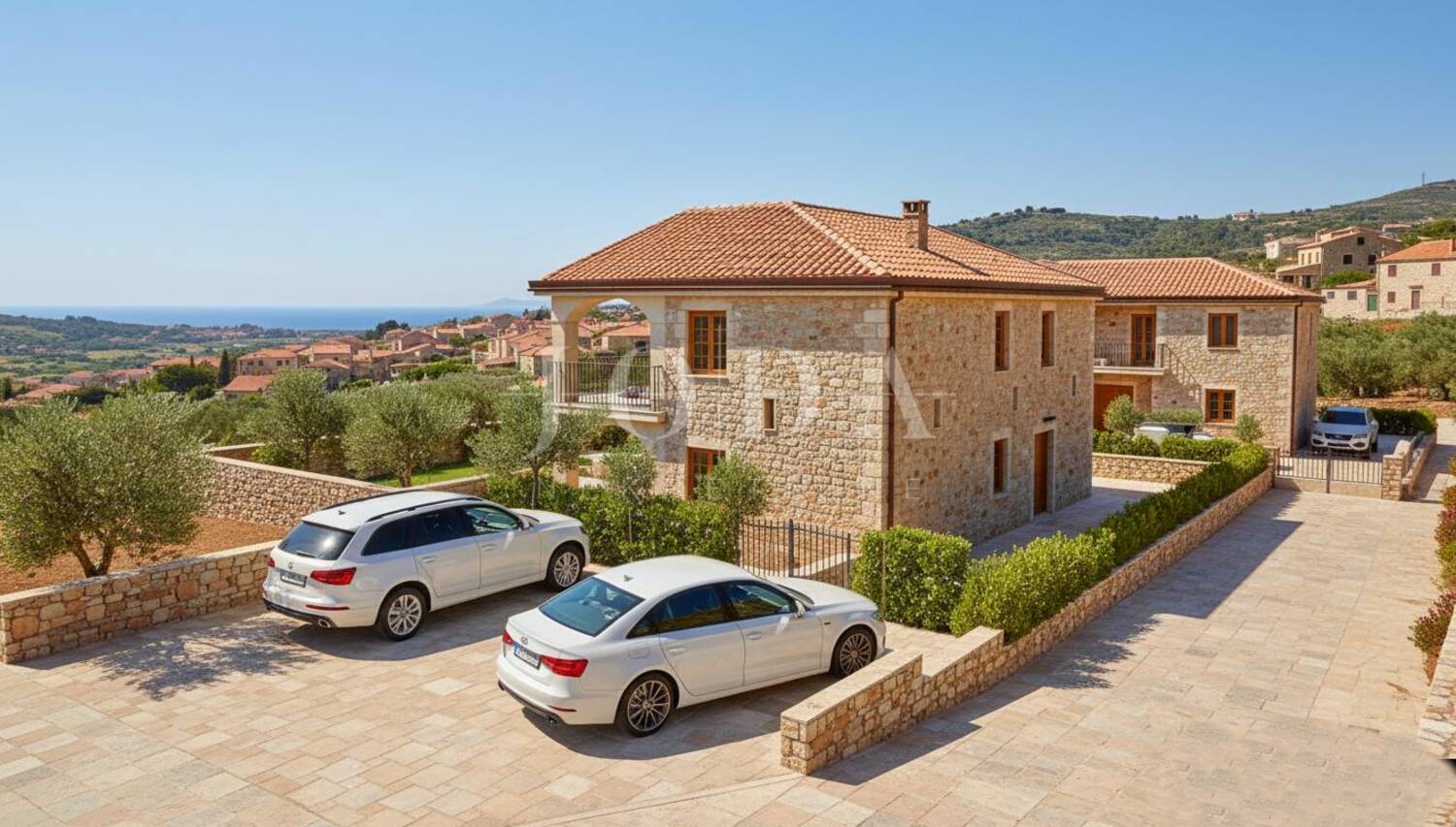 Kuća se gradi vrhunskim materijalima i opremom. Bit će opremljena podnim grijanjem na struju, dok su u spavaćim sobama predviđeni kvalitetni parketi. Stolarija će biti kombinacija PVC-a i aluminija s griljama, a u dnevnom boravku planiran je i klasični kamin. Fasada kuće bit će obložena kamenom, čime se dodatno naglašava rustikalni mediteranski stil.