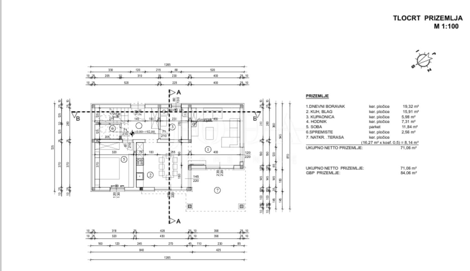 Ukupna neto površina kuće iznosi 138,21 m², dok bruto površina iznosi 169,92 m².