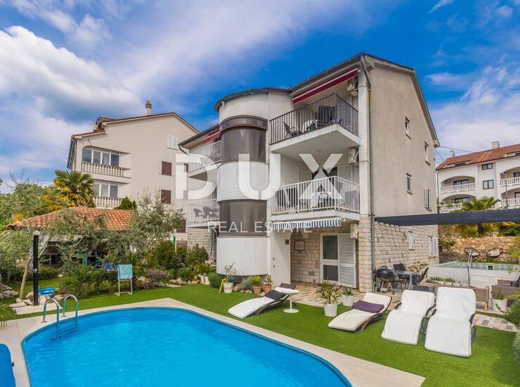 Malinska - apartmanska kuća s dva bazena i pogledom na more.