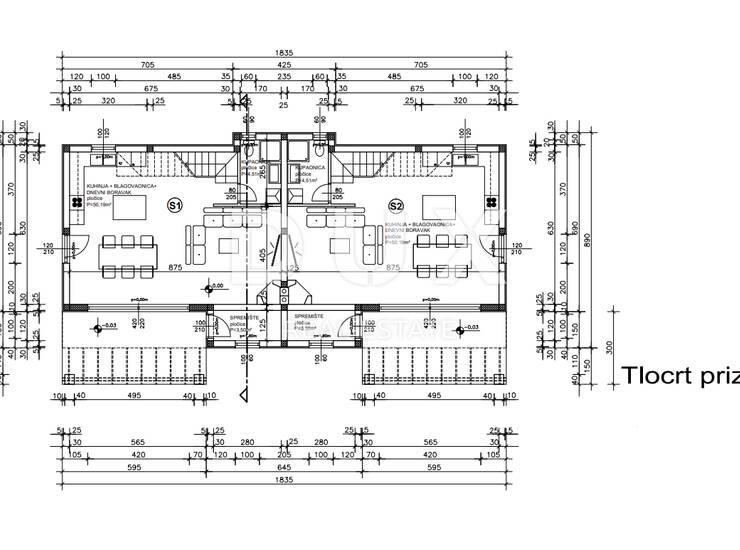 U prizemlju se nalazi prostrana i moderno opremljena kuhinja spojena s elegantnim dnevnim boravkom, stvarajući otvoreni prostor idealan za obiteljska okupljanja i druženja s prijateljima. Također, u prizemlju se nalazi i kupaonica za goste, opremljena najkvalitetnijom sanitarnom opremom.