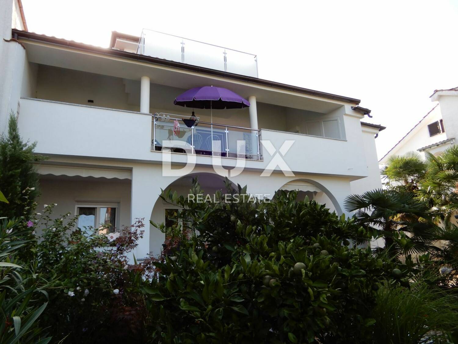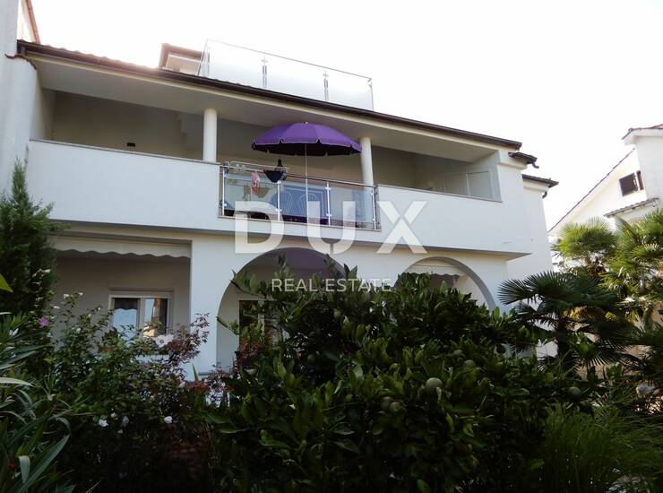 Prekrasna kuća sa garažom, tri parkirna mjesta i velikim vrtom na kojem je sjenica sa roštiljem nalazi se cca 350 m od mora i centra Malinske. Sastoji se od podruma, prizemlja, prvog kata i visokog potkrovlja sa ukupno 300 m2 stambenog prostora.